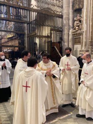 Tras la proclamación del Evangelio se ha hecho la elección del candidato, que fue llamado por su nombre. Después de la elección por parte del obispo, la asamblea ha cantado en acción de gracias.