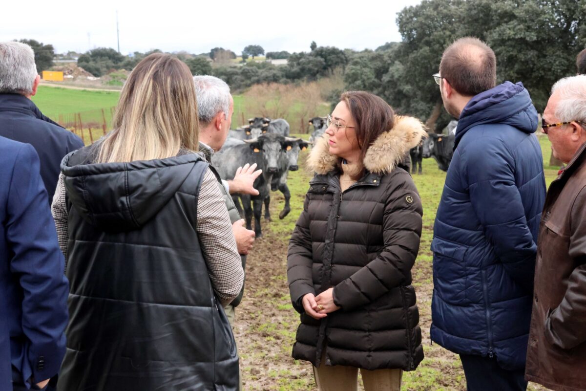 Tras la inauguración de las IV Jornadas de la Carne de Buey Morucho de Bellota, la consejera ha visitado la finca Las Carboneras, de pura raza Morucha en la localidad de Carpio de Azaba, acompañada por el presidente de la Diputación de Salamanca, Javier Iglesias; el alcalde de Ciudad Rodrigo, Marcos Iglesias, y el director general de Producción Agrícola y Ganadera, Rubén Serrano.