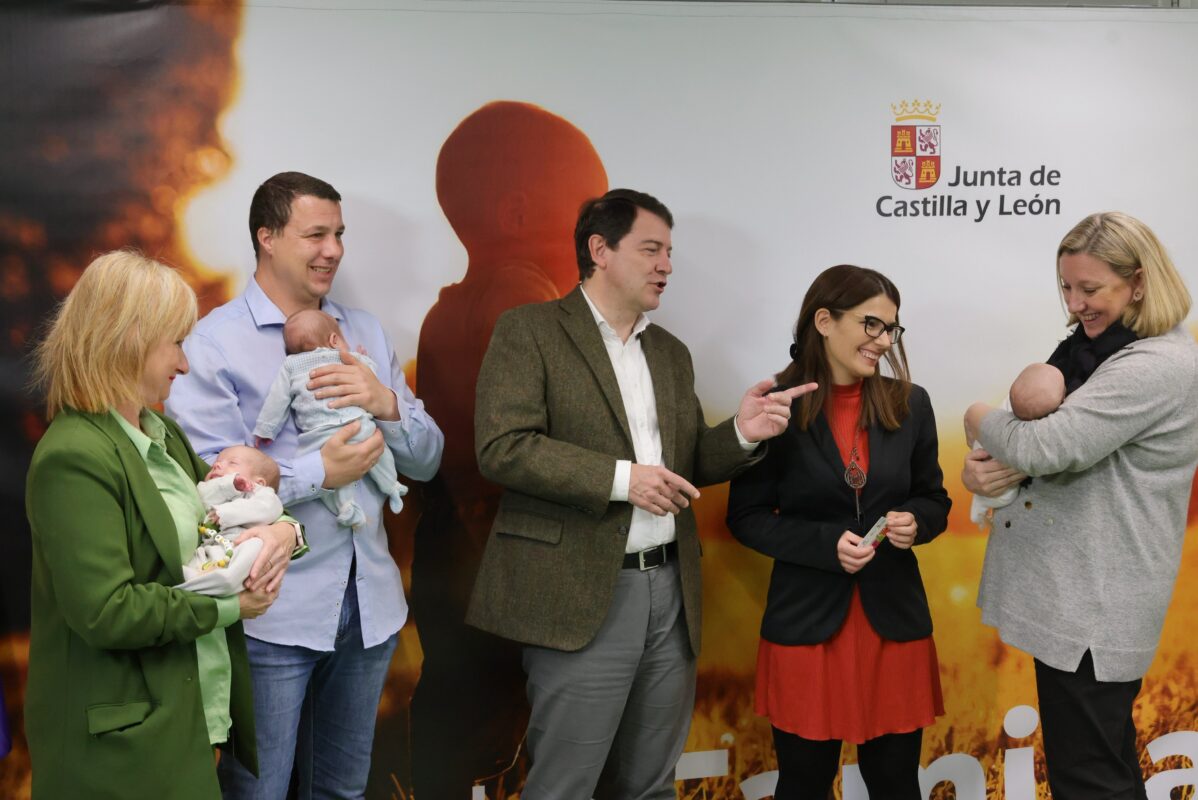 En el caso de parto múltiple o adopción simultánea, la Junta abonará por todos los nuevos hijos el importe mayor que corresponda. Es el caso de la familia zamorana de Héctor y Arantxa, que el pasado 5 de enero tuvieron trillizos. Esta mañana, el presidente de la Junta les has hecho entrega de la ‘Tarjeta Familia’, que contiene la cuantía del ‘Bono Nacimiento’ que les corresponde por este alumbramiento.