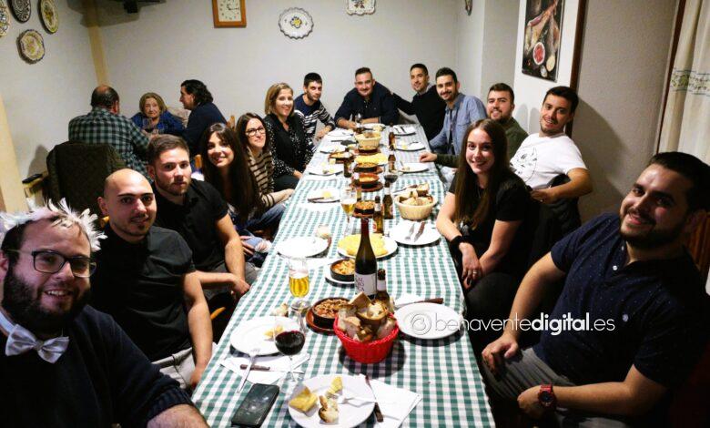 Con una cena compartida a base de generosos platos de la comida más hogareña, la de toda la vida en esta antigua casa de comidas, de pulpo, mollejas, callos, tortilla, gambas, así como un abanico de excelentes viandas regadas con vinos de la tierra y refrescos, el nutrido grupo de jóvenes ha querido reconocer la labor de servicio hostelero durante décadas del establecimiento Bar El Mesón de Santibáñez de Vidriales.