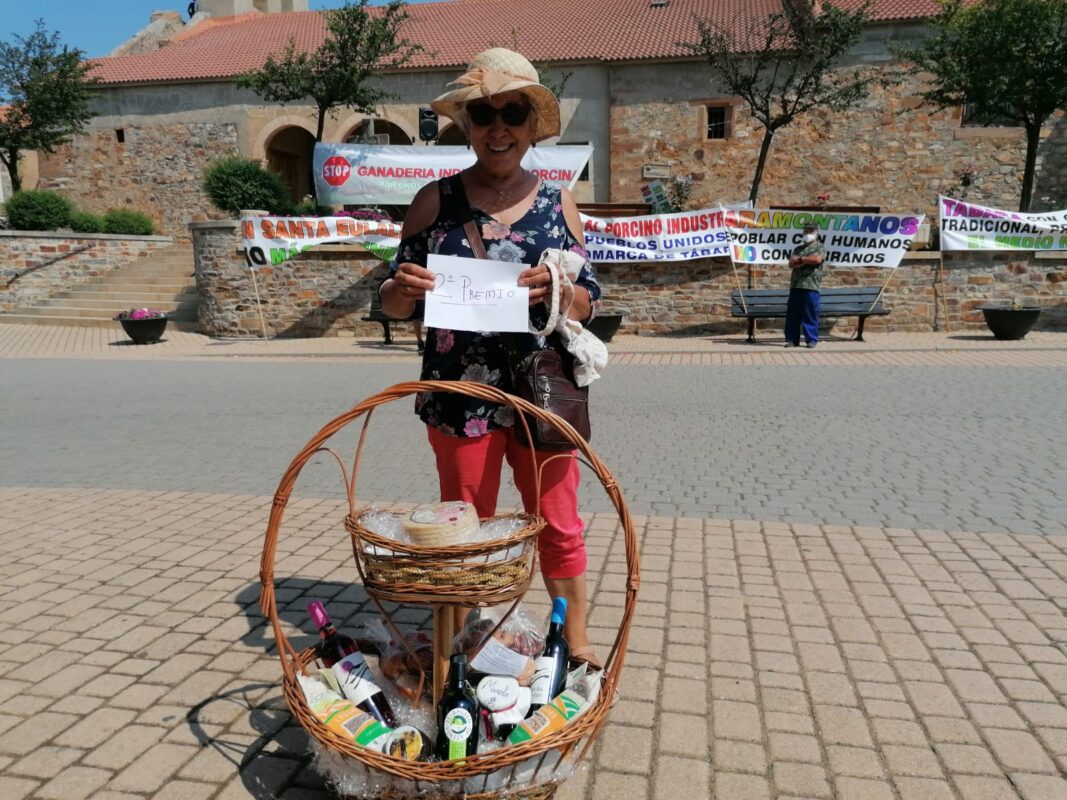 Tras la lectura del manifiesto se ha realizado una rifa, en la que se han sorteado tres premios entre los participantes. Los premios, donados por miembros de la asociación, han sido una cena en un establecimiento de hostelería de la comarca, una cesta de productos de la tierra y otra cesta de productos de la huerta. El primer y el segundo premio se han entregado a los afortunados, que se encontraban en la concentración. El tercer premio estaba ausente. La información de la rifa se colgará en las redes sociales de la asociación para que todos los socios y participantes la conozcan, según explican desde la asociación Pueblos Unidos.