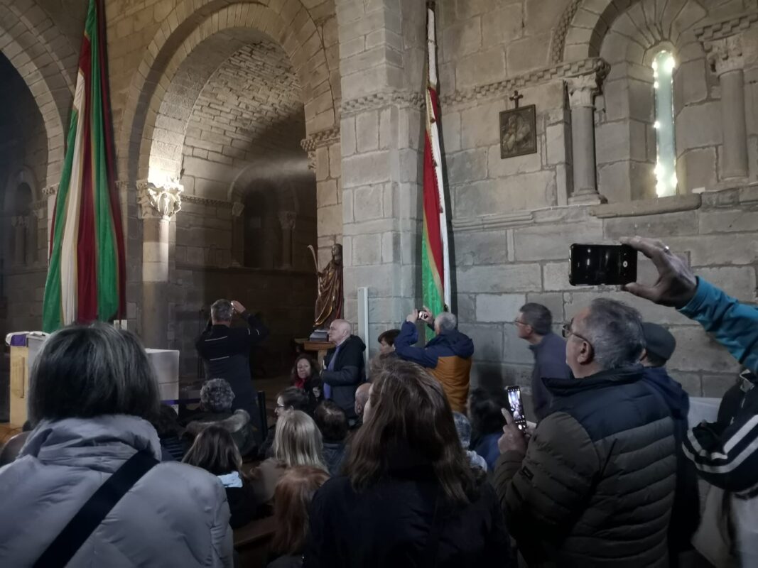 Cinco vecinos y vinculados con la parroquia recibieron un obsequio en reconocimiento a su difusión y promoción del fenómeno del rayo de luz equinoccial, el templo románico y la colección museística.