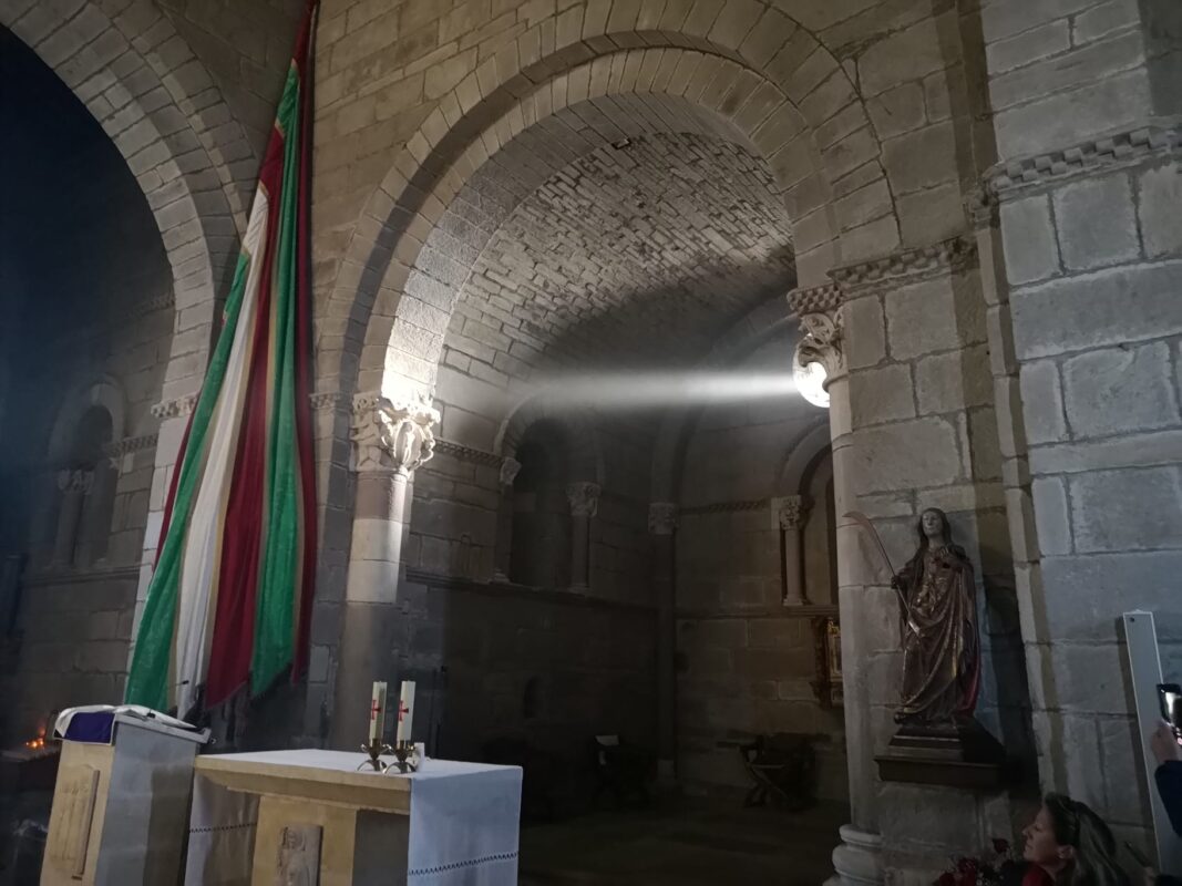 La iglesia de Santa Marta de Tera ha vivido esta mañana del domingo 19 de marzo una jornada excepcional. El rayo de luz equinoccial, como heraldo de la primavera, atrajo a un numeroso público llenando el templo parroquial para contemplar el fenómeno luminoso proyectado sobre el capitel más conocido del camino jacobeo mozárabe sanabrés. El astro sol iluminó, una vez más, la representación en la piedra de una figura asexuada que, según los estudiosos, podría atribuirse a la mártir Santa Marta elevándose a los cielos o también al Resucitado. La luz solar se proyecta unos minutos antes de las 09:00 horas y unos minutos después en la figura sobre una mandorla sujeta por los ángeles, objeto de estudio de teólogos en consonancia con los propios estudios de la arquitectura y de la astronomía.