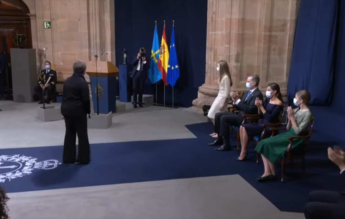 La encomiable labor ejercida por Sara Bravo y el resto de sanitarios del pais durante la pandemia era reconocida por el Estado a través de la Familia Real, el Gobierno de la nación y los representantes de las altas instituciones presentes en la entrega de los Premios Princesa de Asturias.