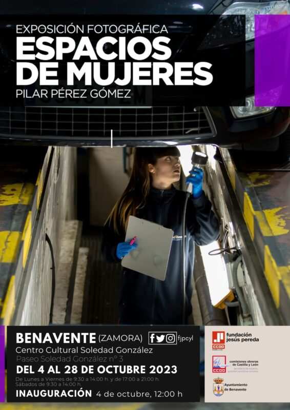 Esta exposición, compuesta por 40 fotografías de Pilar Pérez y producida por la Fundación y por la Secretaría de Mujer y Políticas de Igualdad de CCOO de Castilla y León, se podrá ver entre el día 4 y el 28 de octubre en el Centro Cultural Soledad González de Benavente de lunes a viernes de 9:30 h a 14:00 y de 17.00 a 21:00 y sábados de 9:30 a 14.00 h.