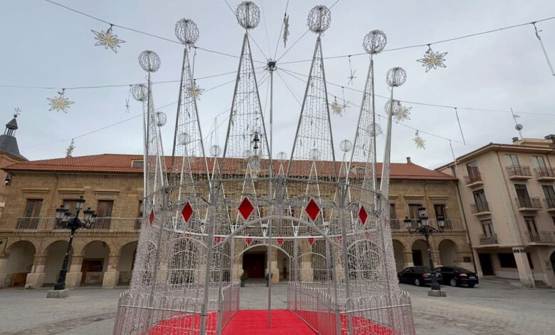 La Plaza Mayor de Benavente comienza a vestirse de Navidad. Quienes paseen por el ágora benaventana podrán apreciar la estructura instalada, una enorme corona de luces, y disfrutar del ambiente que anticipa la Navidad.