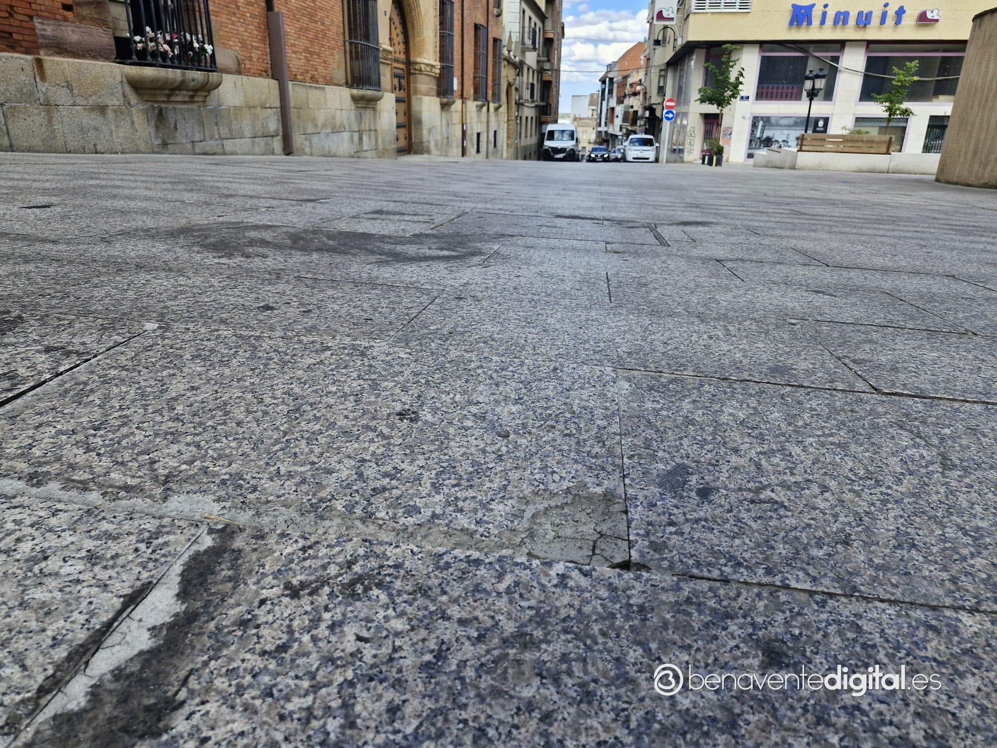 La obras de sustitución de las losas de granito en el pavimento de la plaza San Francisco de Benavente levantan no pocas críticas de conductores y vecinos calificándolas como una «auténtica chapuza«