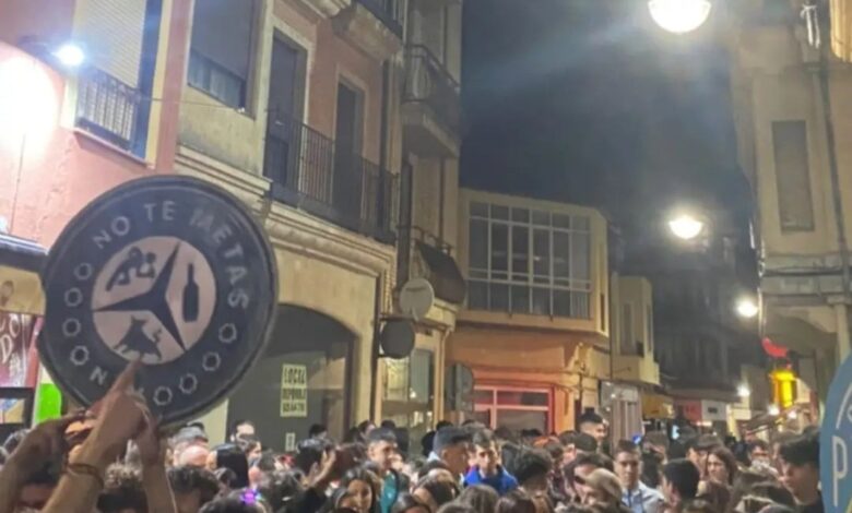 La peña no oficial de reciente creación «No te metas» de jóvenes, reúne más de 200 personas al compás de su charanga paso_doble la noche del sábado de La Veguilla durante cuatro horas sin parar.