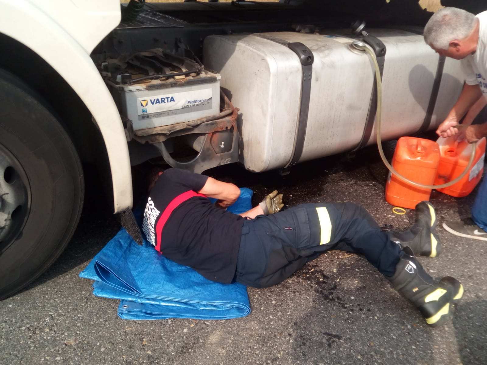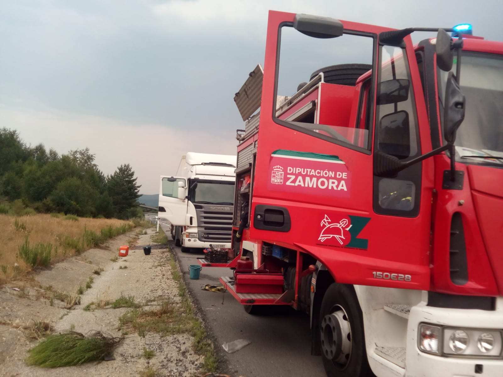 Los bomberos de Rionegro del Puente se trasladaron hasta el lugar del incidente debido a que el vehículo sufría la pérdida de combustible.