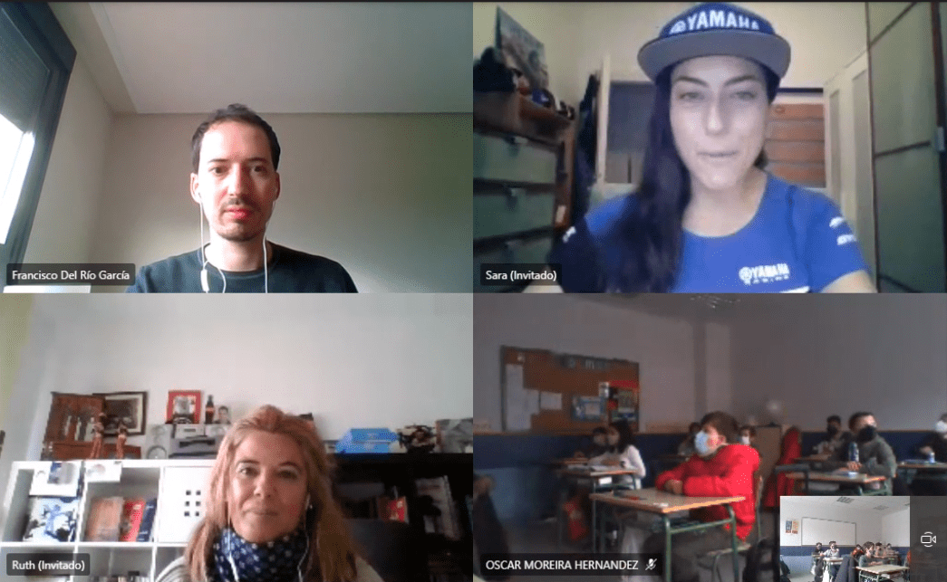 La piloto zamorana Sara García está muy acostumbrada a subir y bajar dunas con su moto Yamaha, con la que ha sido campeona de España de rally durante cuatro años consecutivos (2016 – 2019) y el oro en 2017 en el campeonato del mundo de Bajas, una prueba mítica en el mundo del motociclismo como también lo es el Dakar. Sara se convirtió en 2020 en la primera mujer española en acabar el Dakar en la categoría ‘sin asistencia’. Lo había intentado un año antes pero tuvo que abandonar. Y este año volverá a Arabia saudí. Para ello se está preparando, pese a la pandemia, y ya tiene su dorsal para volver a concluir esta carrera tan dura como parece y mejorar la posición de 2020. Los alumnos del CEIP de Morales de Vino han escuchado embelesados las aventuras de esta piloto por los desiertos de Arabia Saudí. García combina las carreras con su trabajo como Ingeniera, su otra gran pasión que combina a la perfección con el mundo del motociclismo.