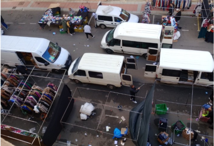 Los vehículos, que accedieron utilizando el carril de sentido contrario no solo hicieron caso omiso a la señalización, sino que también obviaron la presencia de una patrulla de la Policía Local que vigilaba el acceso a la Calle Cañada de la Vizana, donde discurre el mercado de la ropa cada jueves.