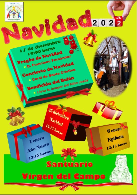 El sábado 17 de diciembre, a las siete de la tarde, se abre la Navidad para el Valle de Vidriales en el Santuario de la Virgen del Campo. En la celebración el maestro jubilado Francisco Fernández será el encargado del pregón de Navidad y la Coral Polifónica de Santa Cristina de la Polvorosa ofrecerá un concierto de villancicos que dará paso a la bendición del Belén y de las imágenes del Niño Jesús presentadas por los feligreses para hacer extensiva la bendición a todos los hogares. Una degustación de chocolate conpletará la jornada