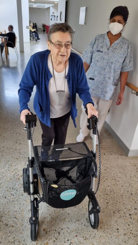 De este modo, los residentes han podido probar los beneficios de estas herramientas que cuentan con funcionalidades como la de asistencia en marcha que evita que el usuario tenga que empujarlo o frenarlo; el control de la distancia con la persona, para sortear posibles caídas; la geolocalización, que permite conocer la ubicación del andador; la detección de obstáculos para esquivar accidentes, o su ancho regulable que aporta estabilidad.