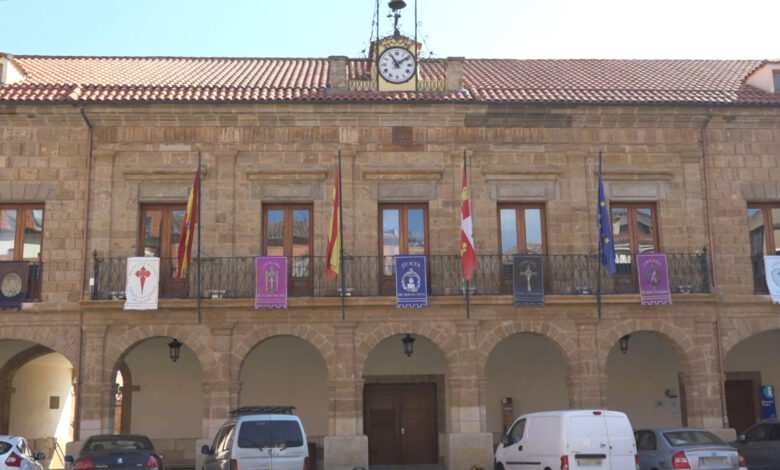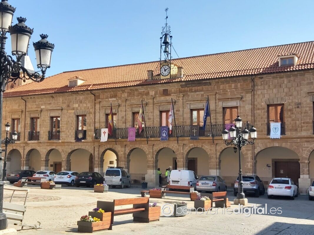 Durante esta mañana, operarios del Ayuntamiento de Benavente han colocado las banderas de las diferentes cofradías de la ciudad con motivo del inicio de la Semana Santa.