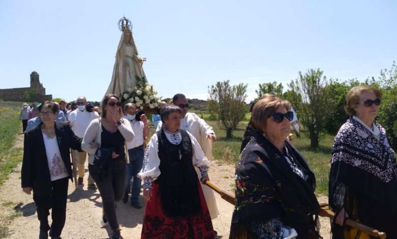 Los romeros partieron en comitiva este domingo 8 de mayo desde la iglesia parroquial en San Román del Valle, teniendo como testigos algunos pendones castellanos y leoneses, para enfilar el camino al Convento, portando la imagen de la Virgen Nuestra Señora del Valle y la imagen del Niño Jesús. La Señora del antiguo Valle de Santa María, que comprende toda esta zona zamorana y leonesa, se sentía feliz entre vecinos y foráneos, entre pendones castellanos y leoneses ondeando sus ricos paños, los sonidos musicales y el rezo y cánticos devocionales. Y no faltaron los bailes tradicionales en la plaza jacobea de San Román del Valle.