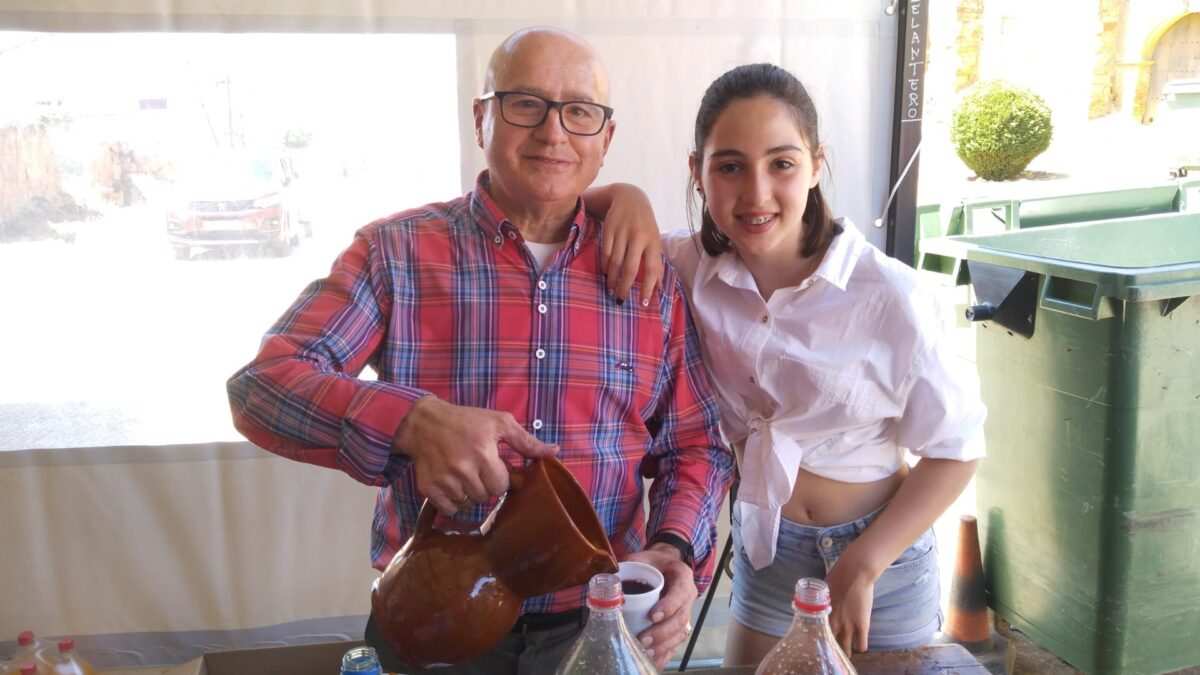 Sirviendo vino en la carpa romera instalada junto al Convento