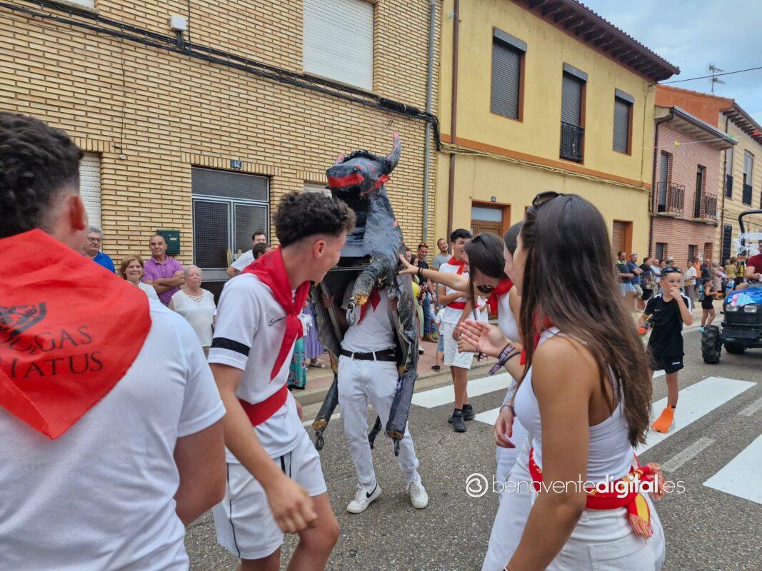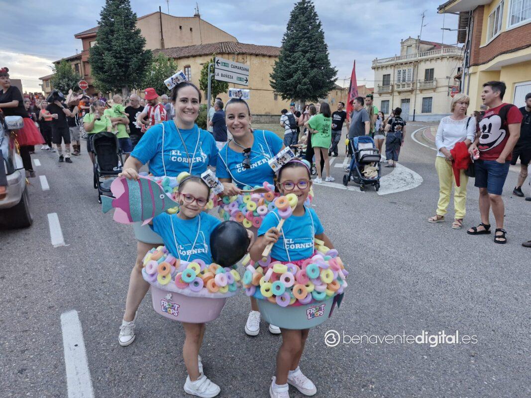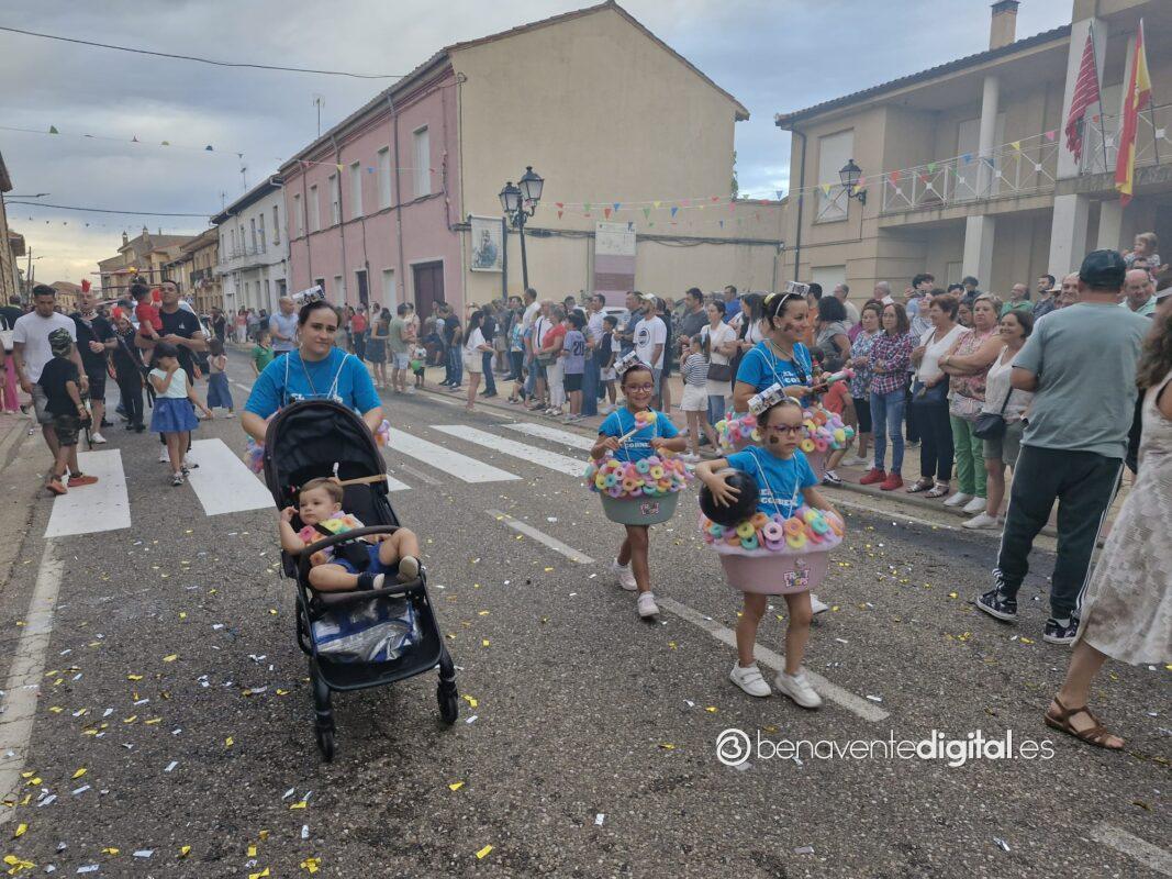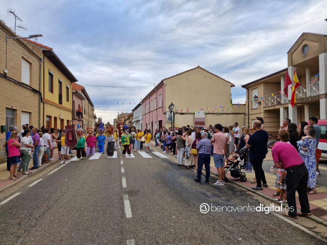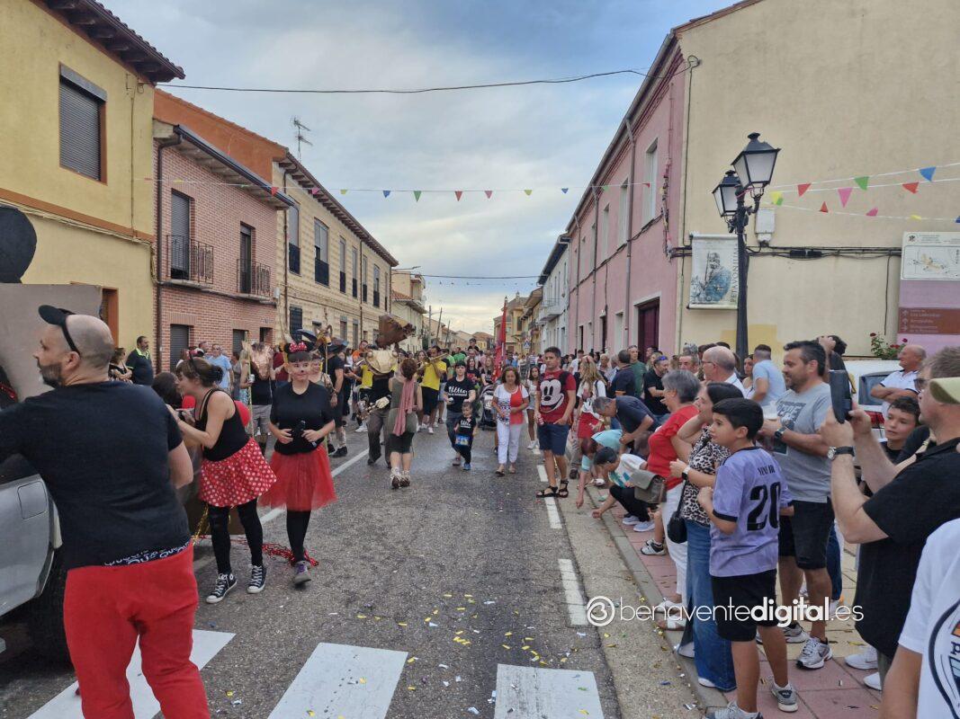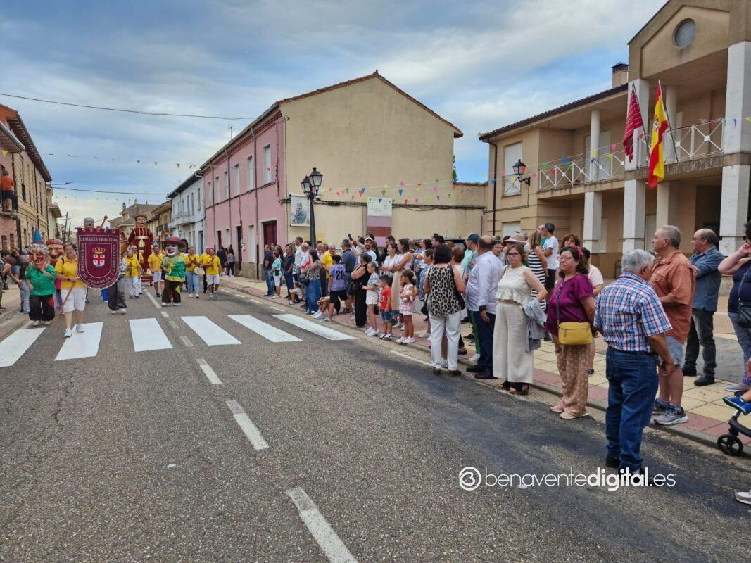 La comitiva multicolor, a la que se sumaron los gigantes y cabezudos de Camarzana de Tera, lograba el beneplácito del numeroso público en la que la participación se puso de manifiesto durante todo el recorrido callejero.