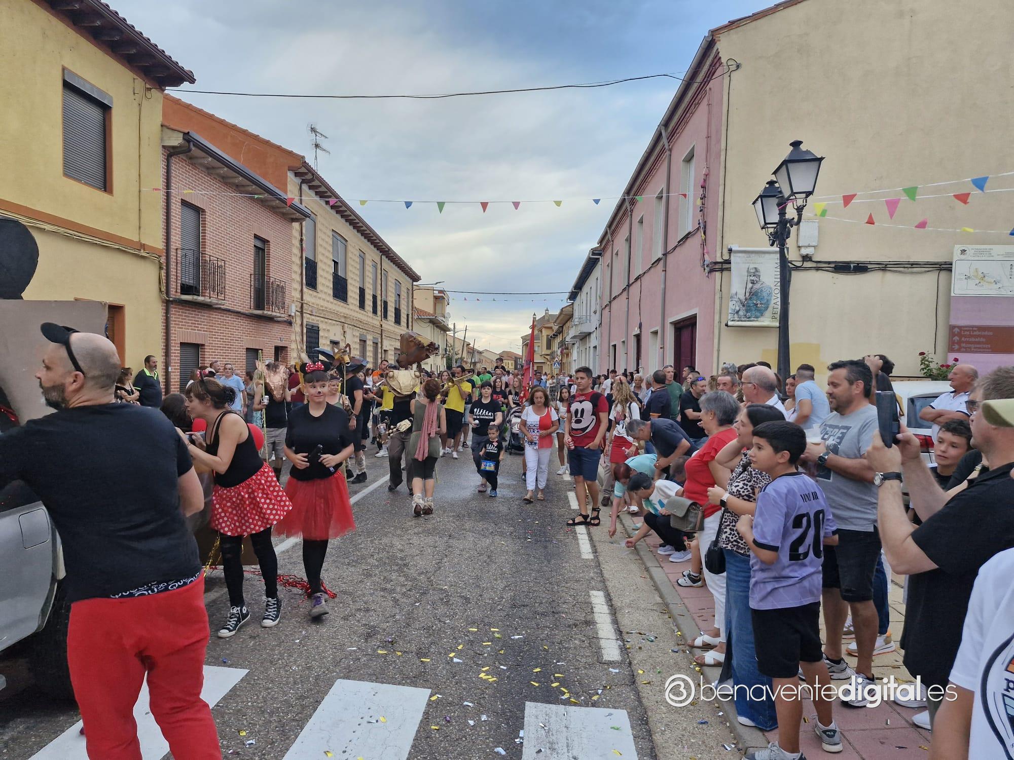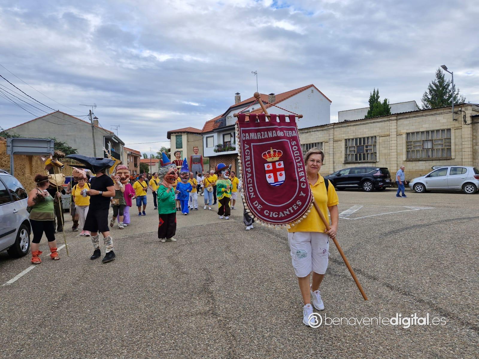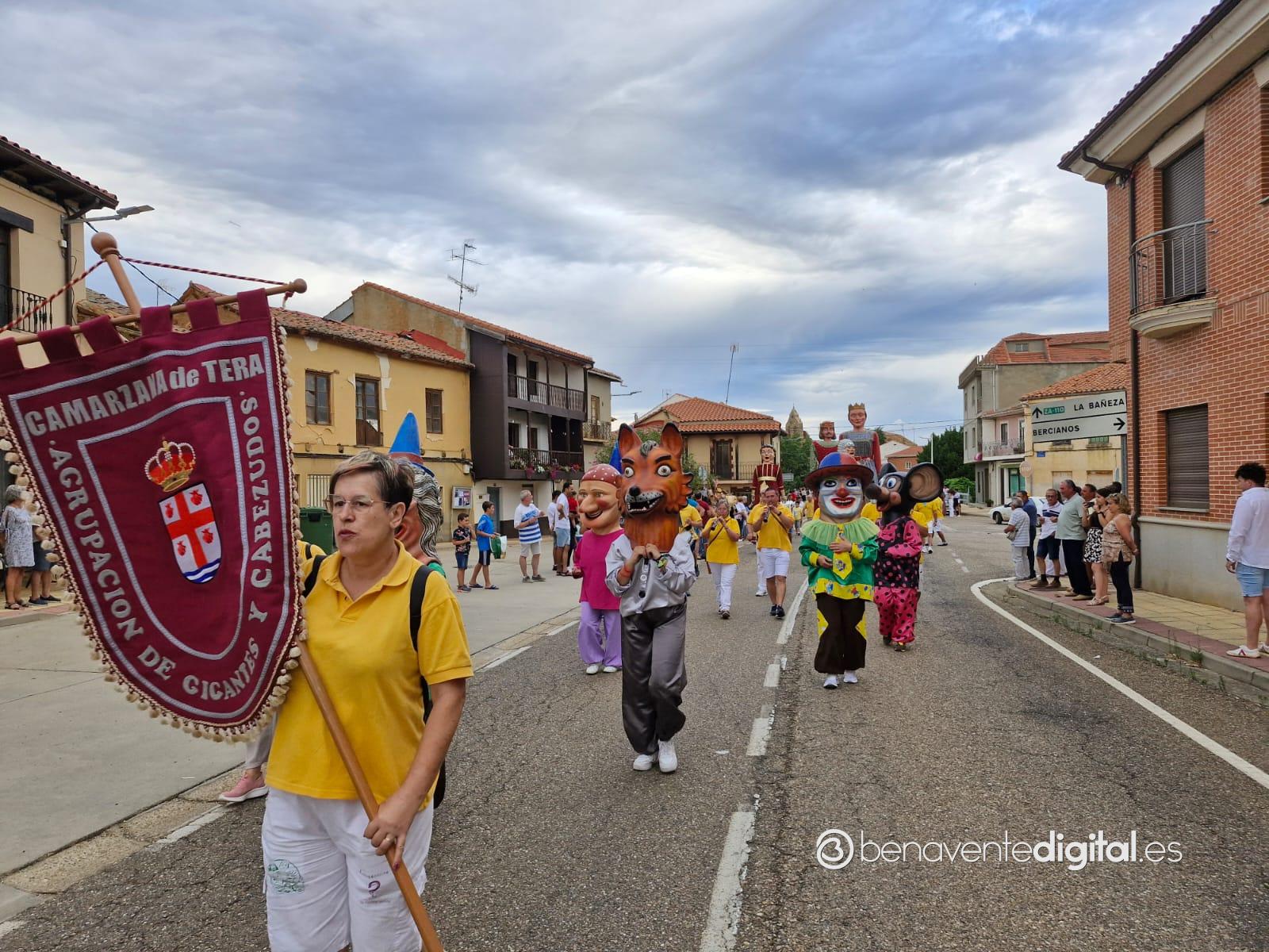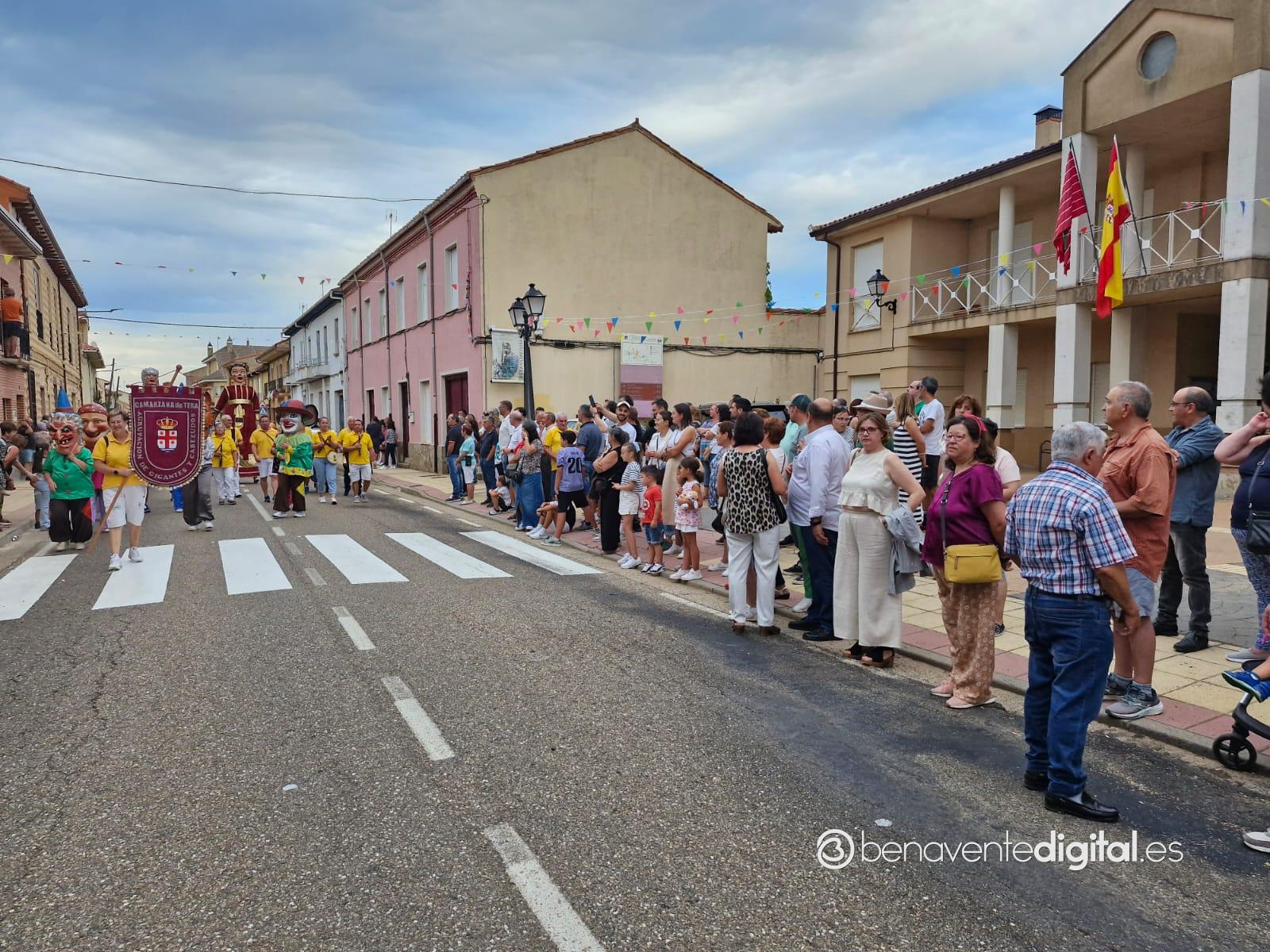 La comitiva multicolor, a la que se sumaron los gigantes y cabezudos de Camarzana de Tera, lograba el beneplácito del numeroso público en la que la participación se puso de manifiesto durante todo el recorrido callejero.