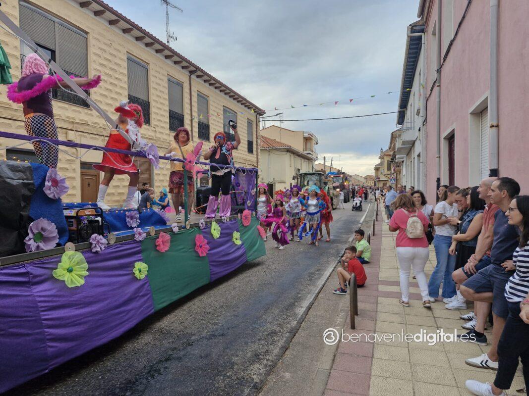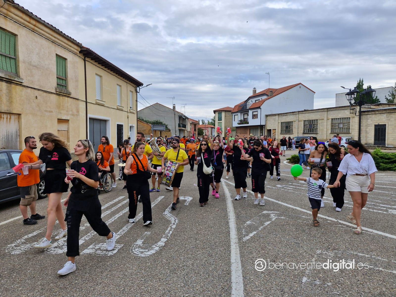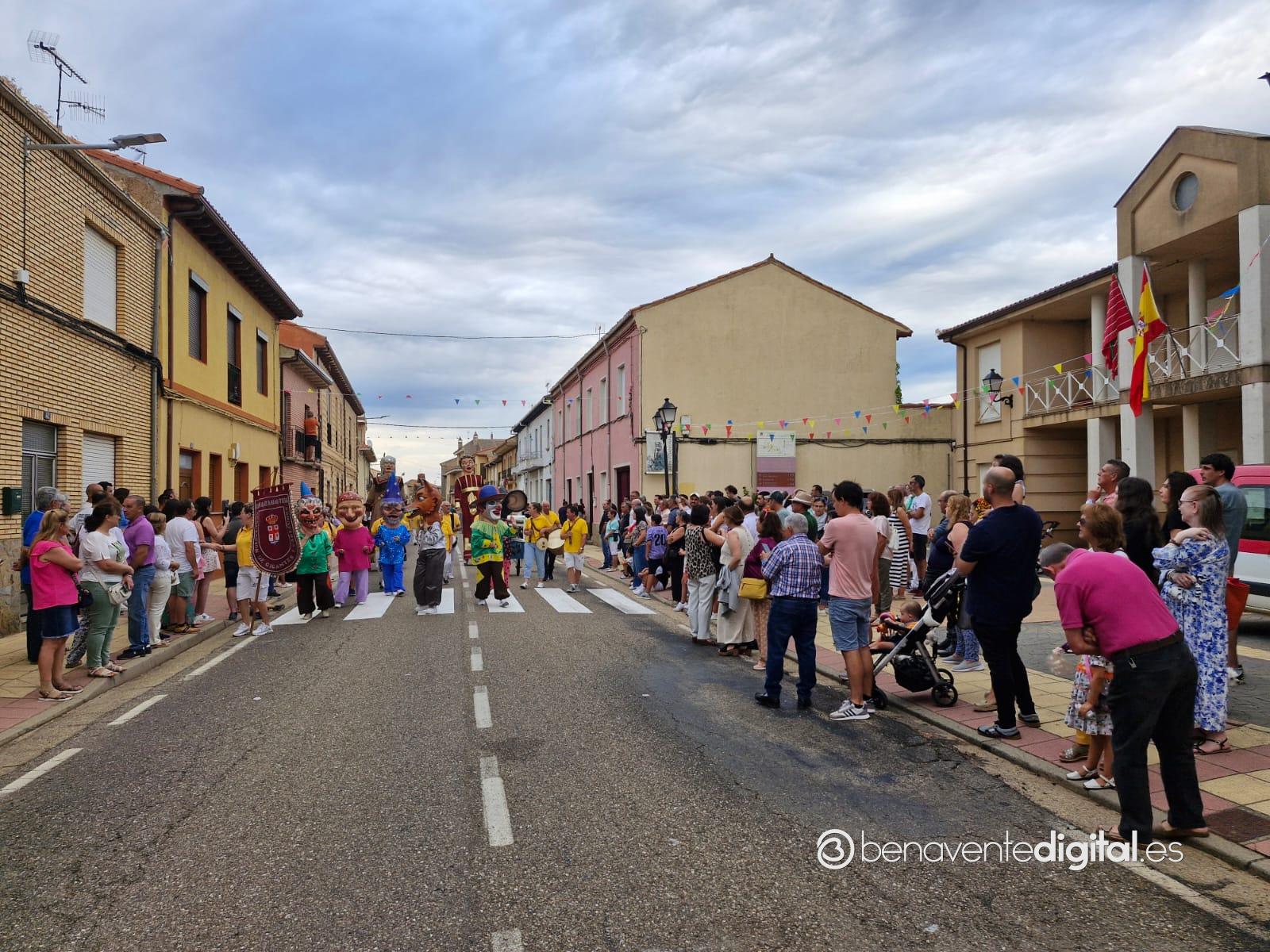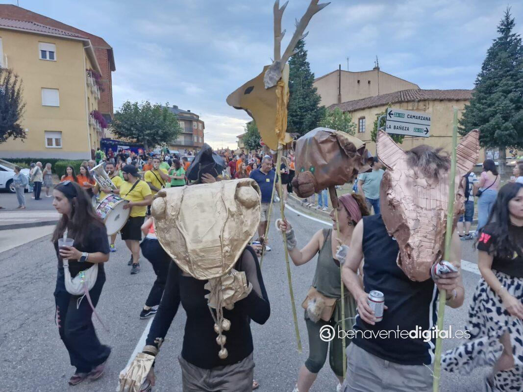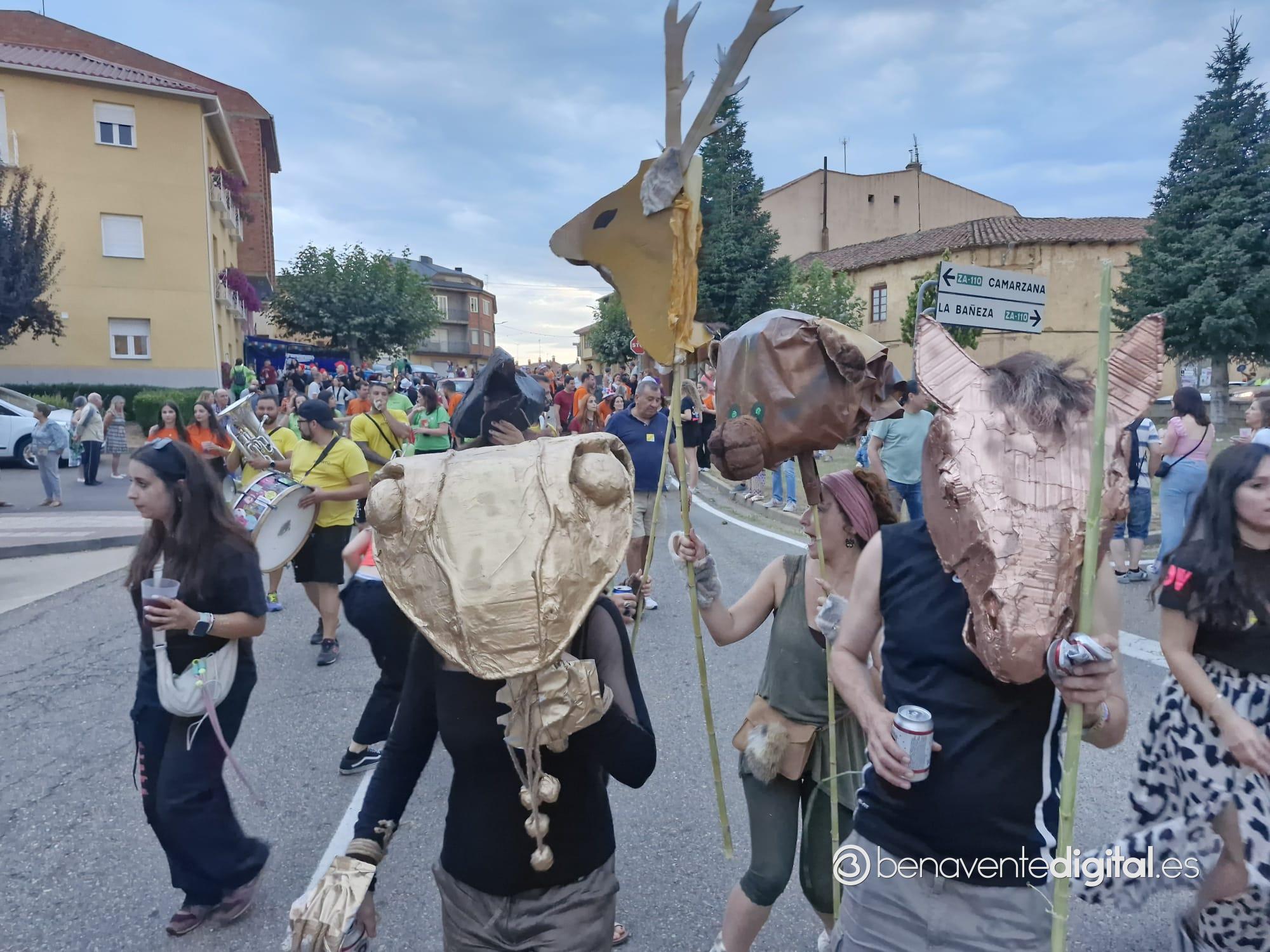La comitiva multicolor, a la que se sumaron los gigantes y cabezudos de Camarzana de Tera, lograba el beneplácito del numeroso público en la que la participación se puso de manifiesto durante todo el recorrido callejero.