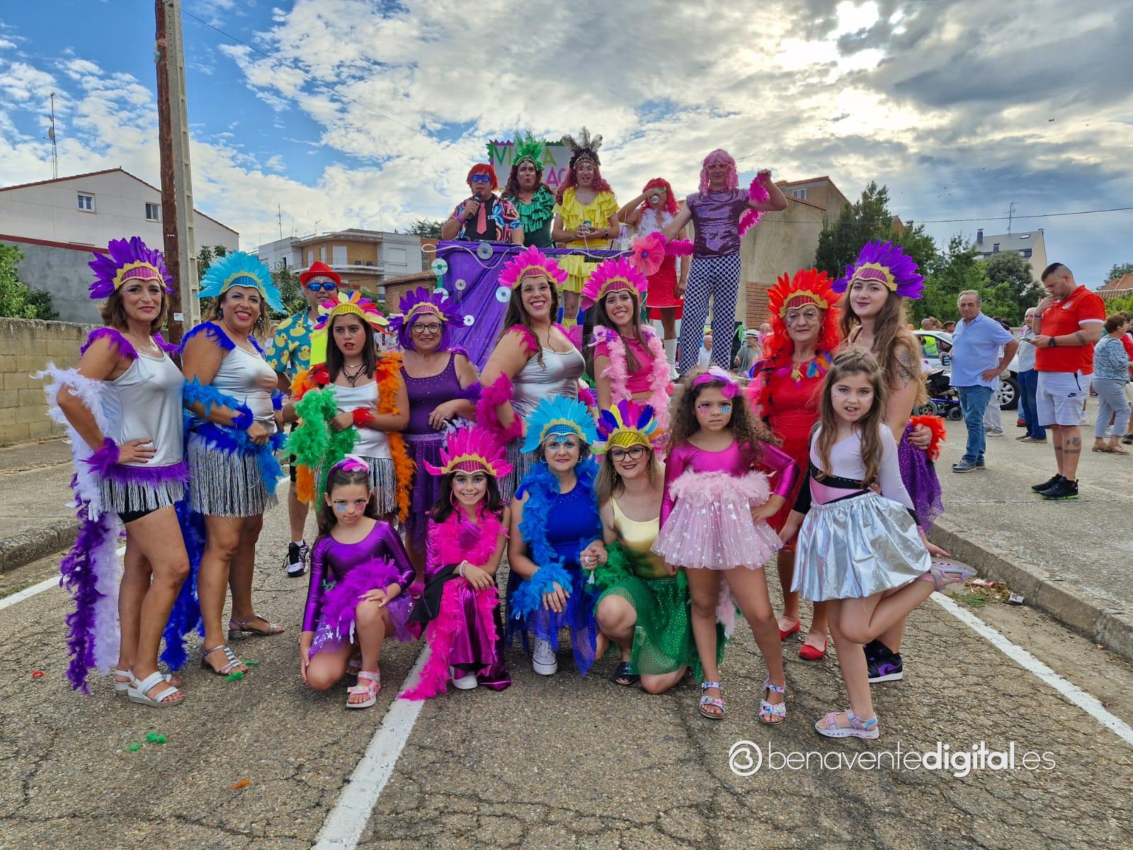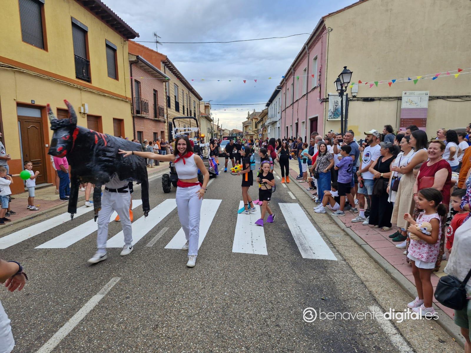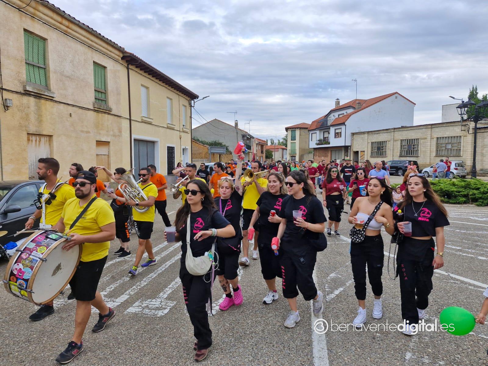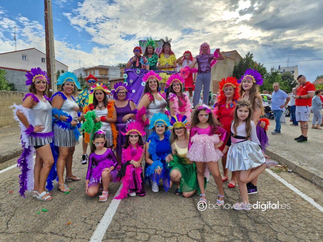 La comitiva multicolor, a la que se sumaron los gigantes y cabezudos de Camarzana de Tera, lograba el beneplácito del numeroso público en la que la participación se puso de manifiesto durante todo el recorrido callejero.
