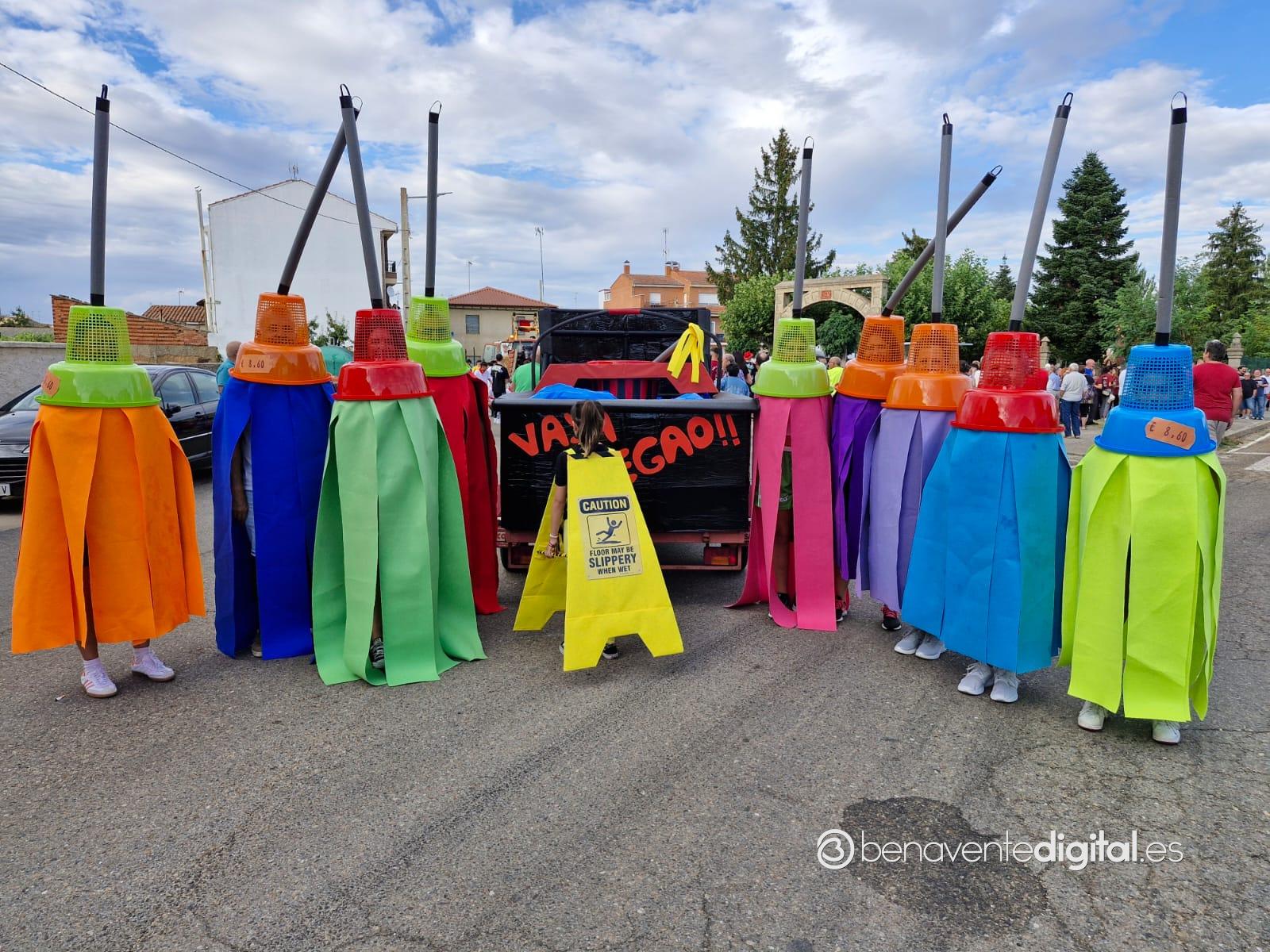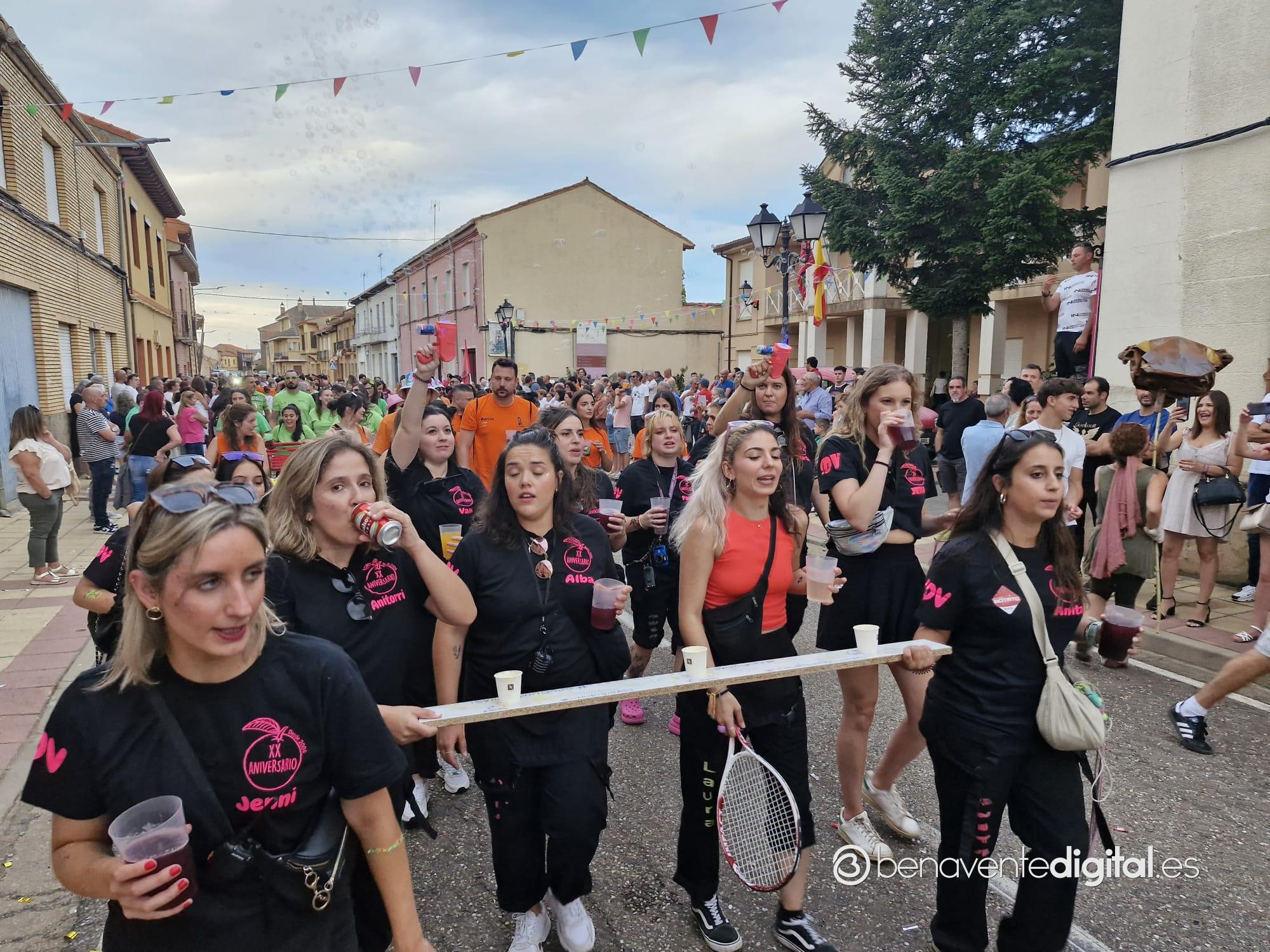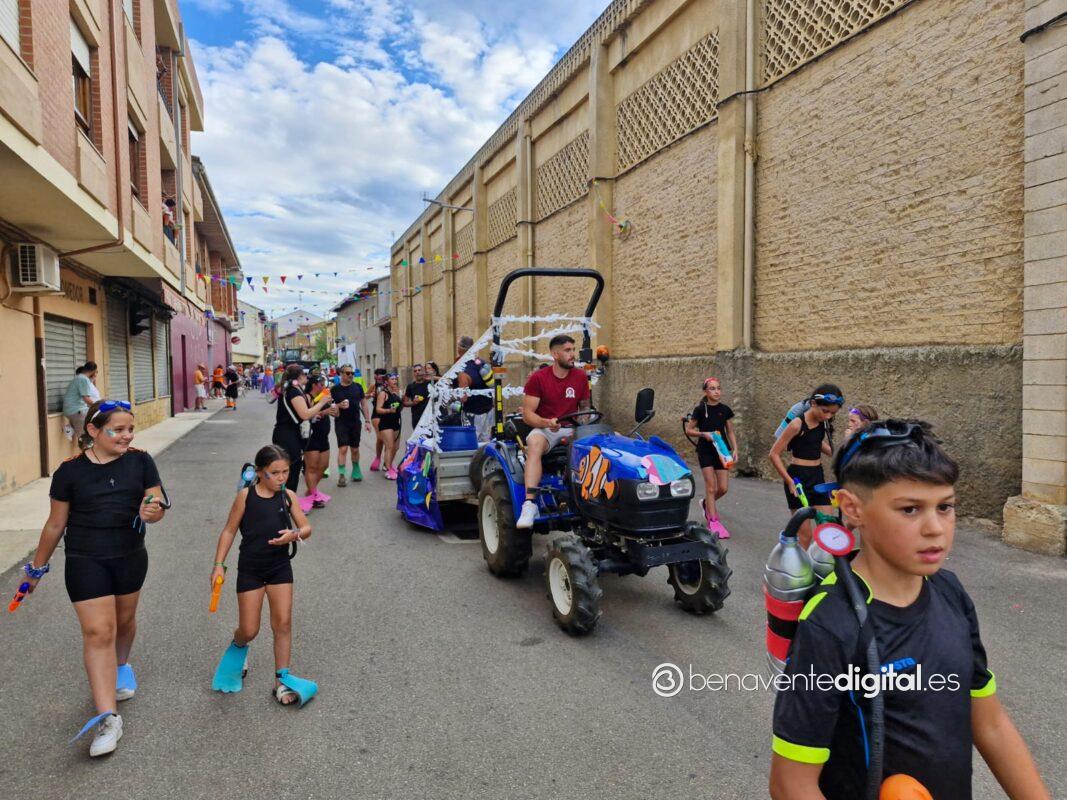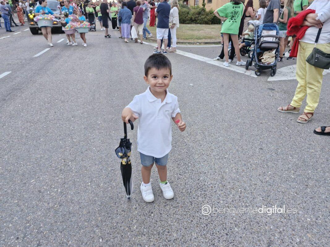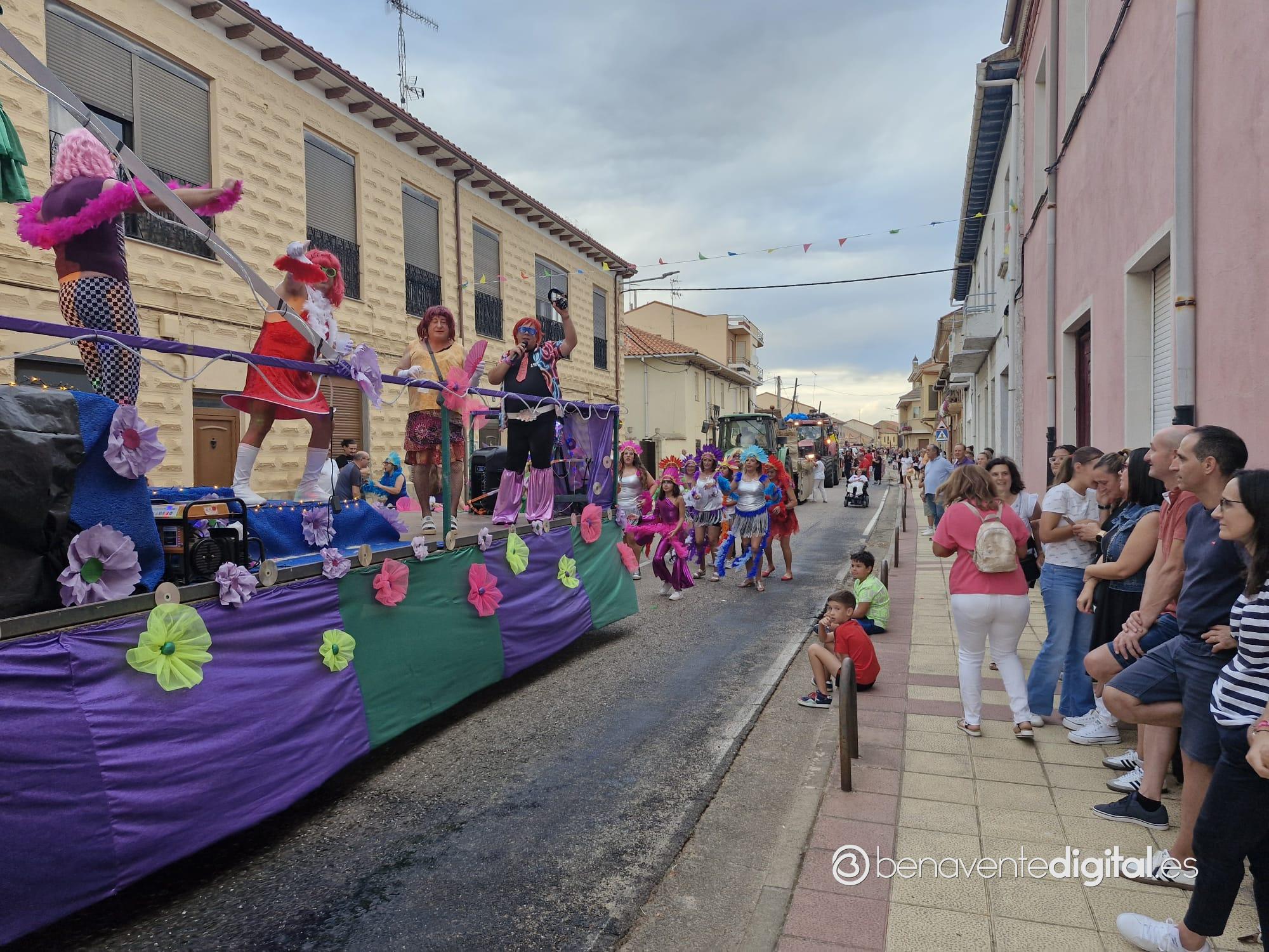La comitiva multicolor, a la que se sumaron los gigantes y cabezudos de Camarzana de Tera, lograba el beneplácito del numeroso público en la que la participación se puso de manifiesto durante todo el recorrido callejero.