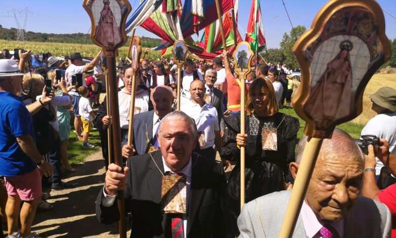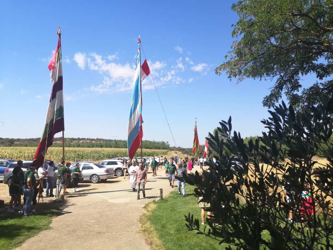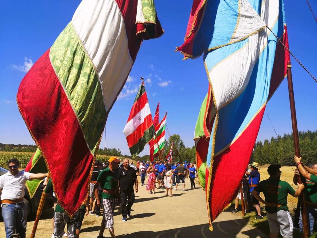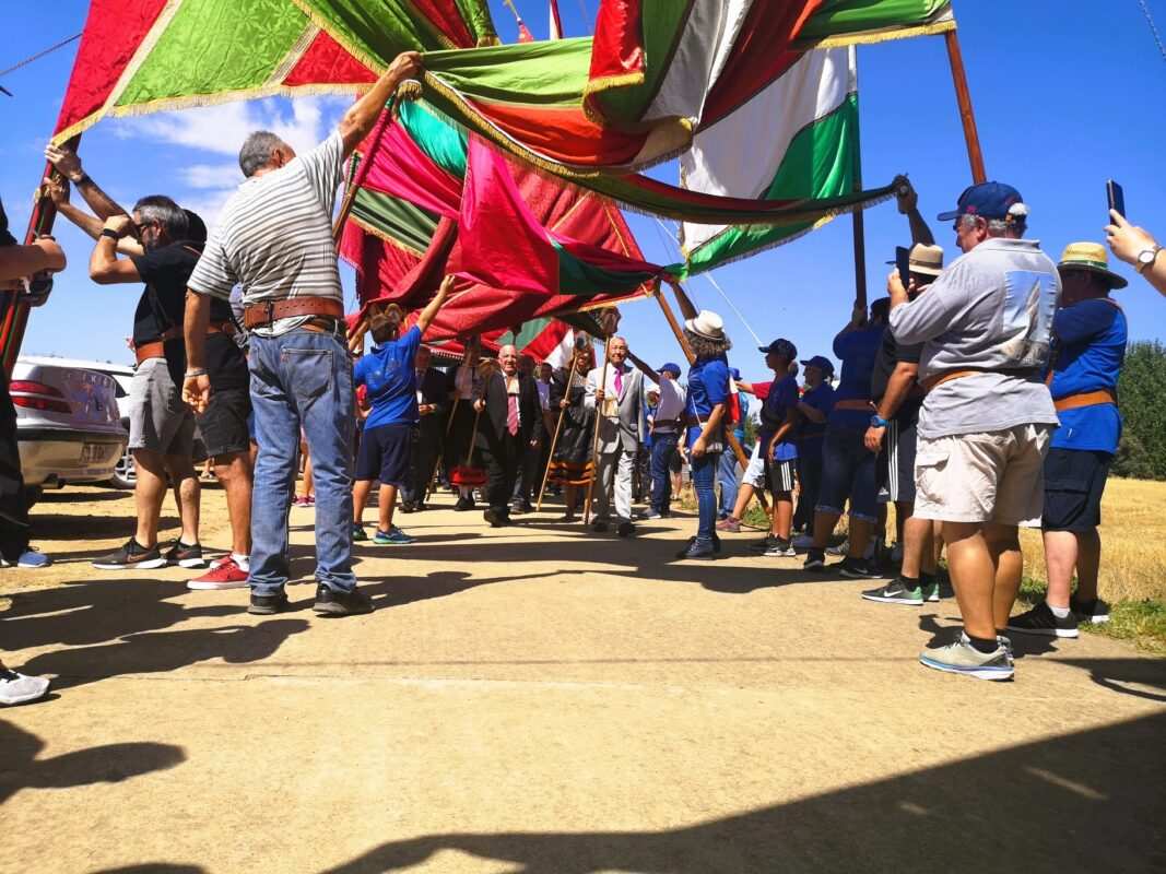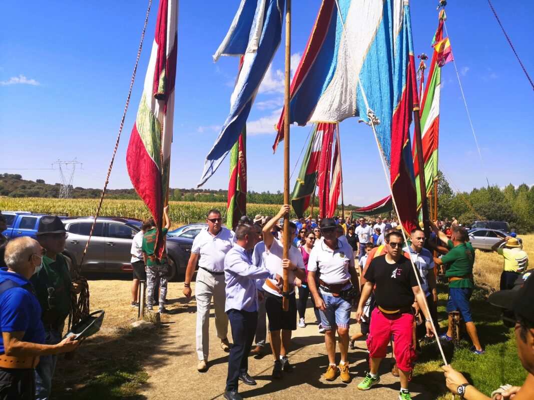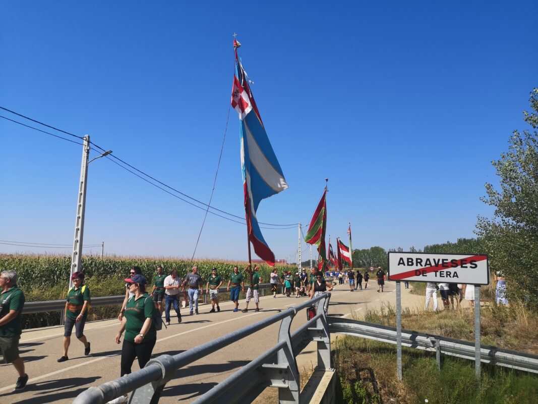 Una docena de pendones del antiguo Reino de León rindieron pleitesía, este mediodía, a la patrona del Tera, a Nuestra Señora la Virgen de las Encinas, en Abraveses de Tera. Una comitiva de enseñas ondeando al viento procedente de las localidades leonesas de Miñambres de la Valduerna, Palacios de la Valduerna, San Román de la Vega, Quintana del Marco, Posadilla de la Vega, San Vicente Mártir y alguna más, así como de las zamoranas Ayoó de Vidriales, Carracedo de Vidriales, Colinas de Trasmonte y el anfitrión, el de Abraveses de Tera, partía desde la casa del Juez de la antigua cofradía, en el acceso a la localidad, lo que popularmente se conoce como las naves por la actividad empresarial de la familia.