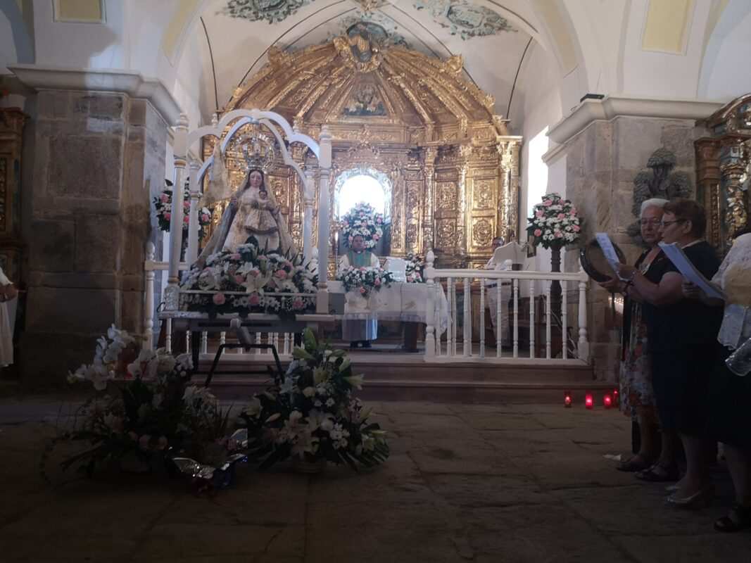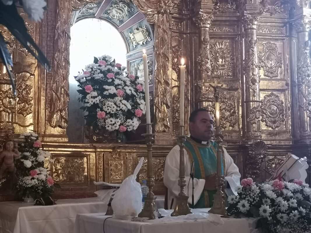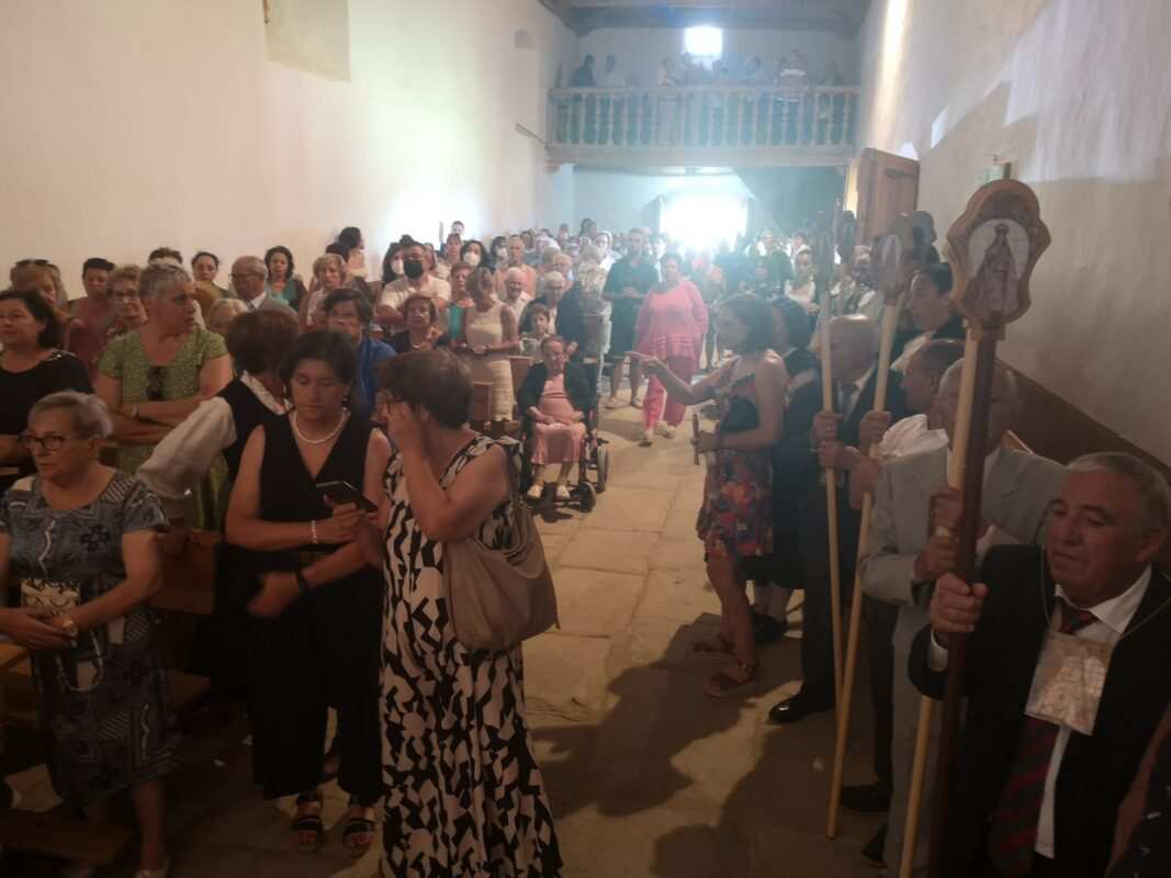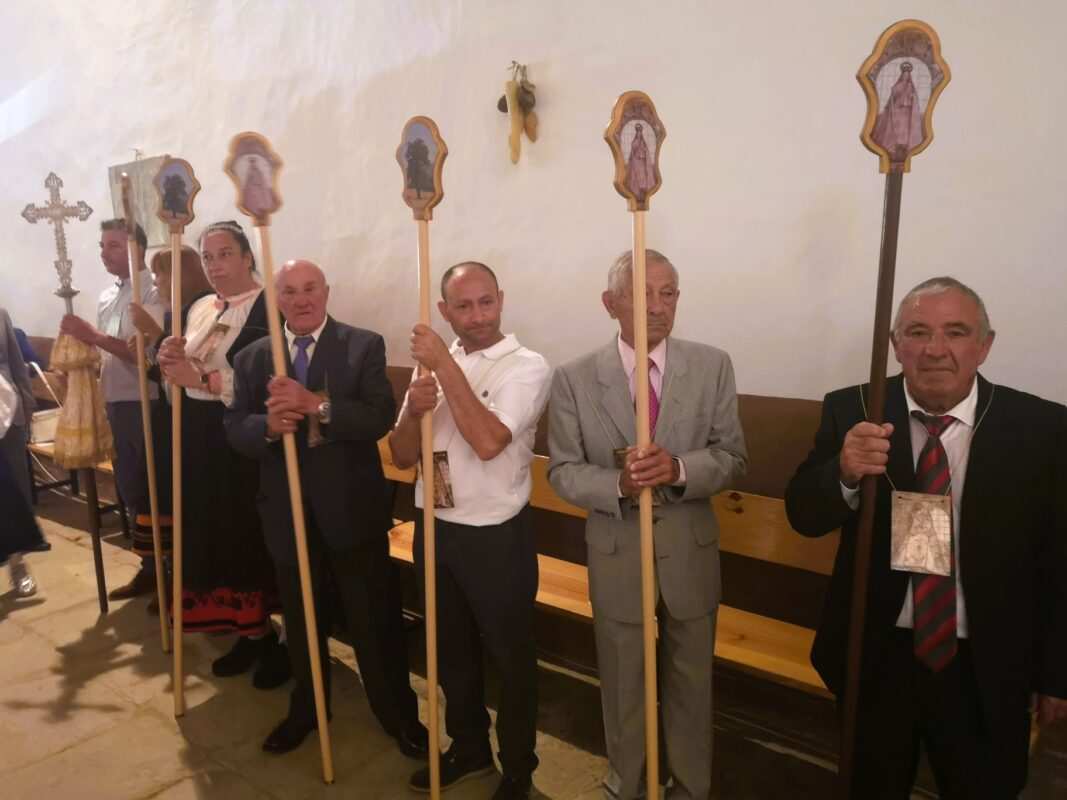 A la entrada del templo mariano los pendones formaron un pasillo para homenajear a los guardianes de la antigua tradición y dar así comienzo a la celebración de la misa en honor a la Señora, oficiada por Cristopher José Vàsquez.
