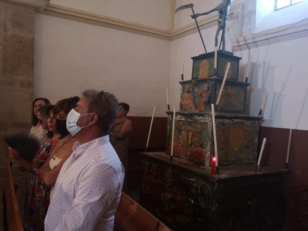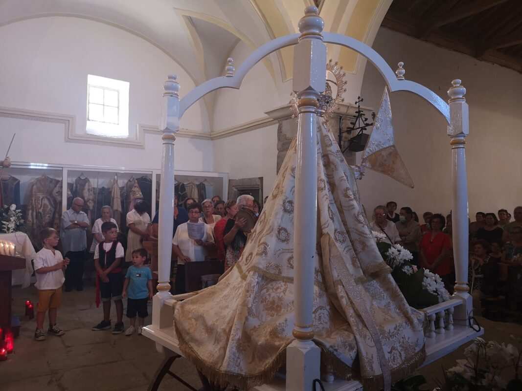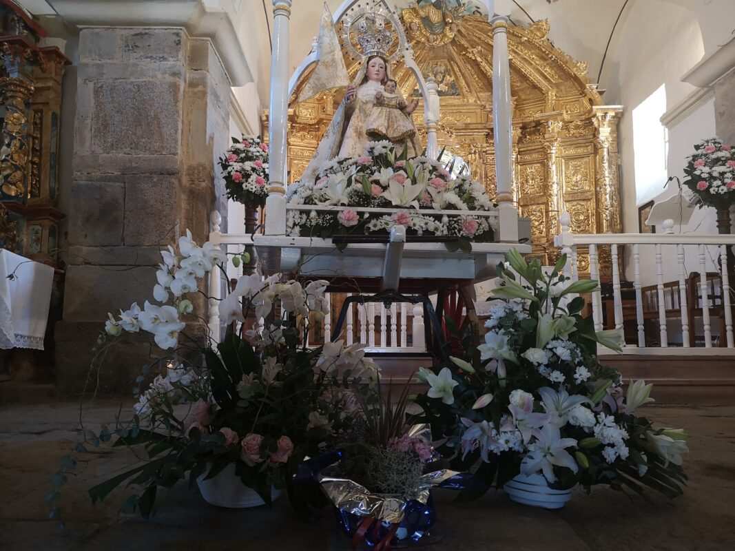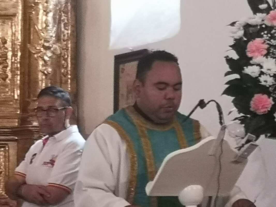 A la entrada del templo mariano los pendones formaron un pasillo para homenajear a los guardianes de la antigua tradición y dar así comienzo a la celebración de la misa en honor a la Señora, oficiada por Cristopher José Vàsquez.