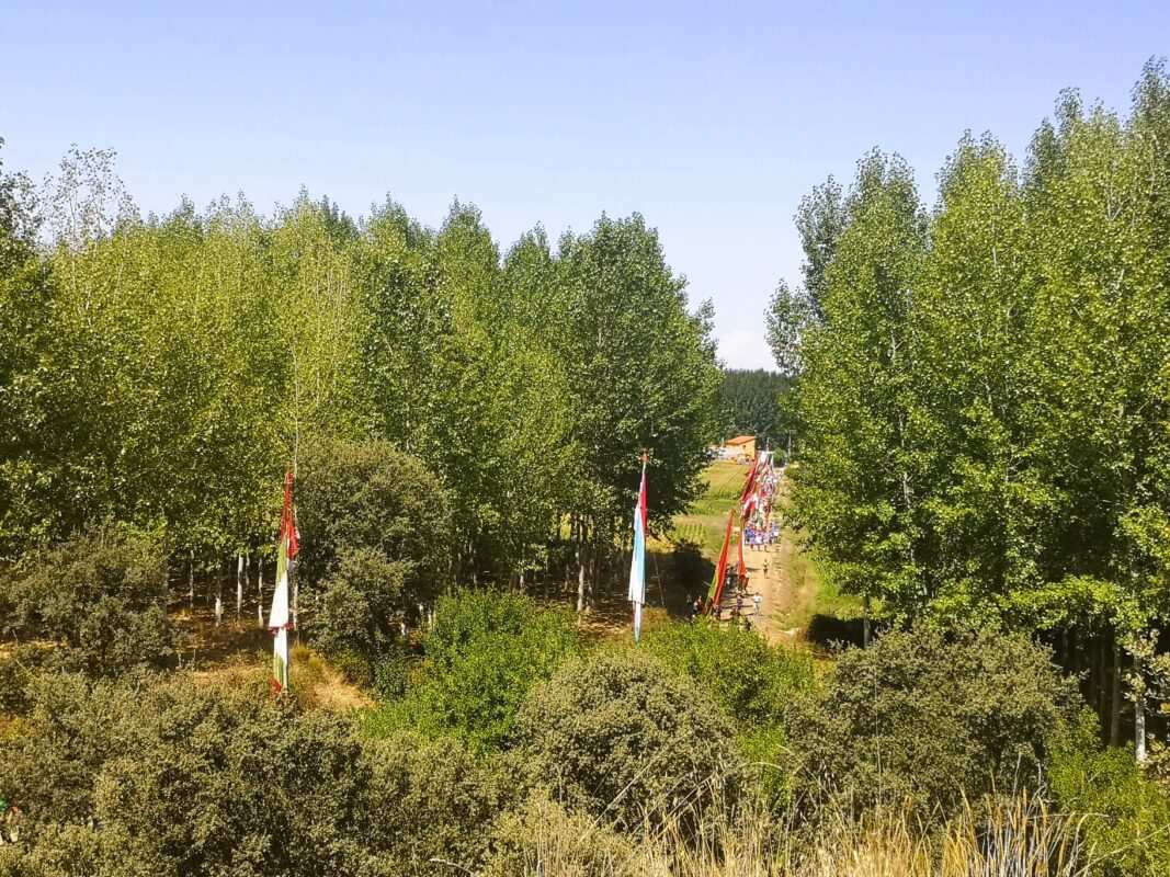 Junto al Juez, Laurentino Furones, los garroteros, los veleros y los bolleros (repartidores de las bollas de pan) se adentraban en el santuario ermita de la Virgen de las Encinas, en el alto de los Casares dominando la vega del Tera, la fértil vega de San Pelayo, como se conoce al arroyo que vierte sus aguas en el cauce del río Tera.