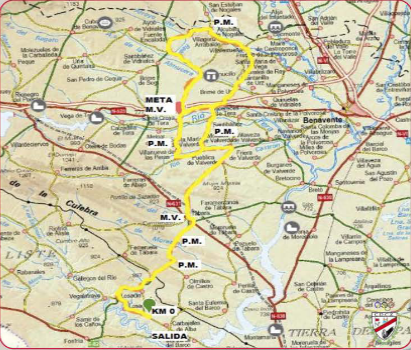 Los ciclistas se adentrarán en el territorio de la comarca de Benavente, desde tierras tabaresas, por la ZA-100 en Pueblica de Valderde, a las 11:32 horas, donde comienza el avituallamiento (zona verde). Continúa el trayecto por la carretera ZA-P-1509 por el exterior de Morales de Valverde, Santa María de Valverde y Bercianos de Valverde para tomar la vía de Villanueva de las Peras (ZA-P-1508) y continuar en dirección a Santa Croya tras sobrepasar el P.M. de 3ª categoría, atravesando Santa Croya sobre las 12:14 horas y enfilar el camino a Santa Marta para tomar la calzada ZA-V-2531 en dirección Pozuelo de Vidriales. Continua el periplo por Grijalba, en dirección a la ZA-P-1510 a Bercianos de Vidriales, a las 12:31 h., en la circunvalación en dirección a Cubo de Benavente. Continúan por la ZA-P-2554 en Rosinos de Vidriales (exterior) para tomar la vía comarcal ZA-110, en el cruce del santuario de Rosinos a Fuente Encalada, a las 12:37 horas.