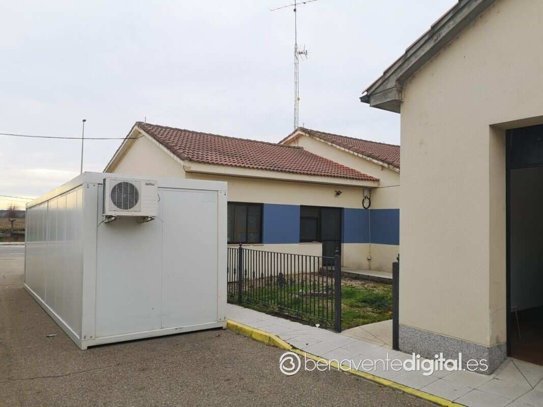Como estaba previsto, la Gerencia de Salud ha instalado junto al Centro de Salud «el Tera» en Camarzana un módulo climatizado para las esperas a las consultas. La instalación de la caseta se alza en la calle de uno de los laterales del edificio, en la parte Este, con acceso directo desde el patio ajardinado.