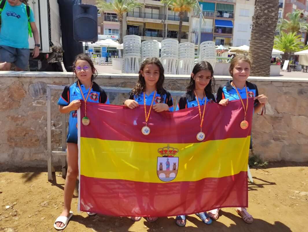 En la jornada de hoy, con pruebas de playa en Puerto Mazarrón, el equipo alevín femenino (Zoe Castaño, Miriam Brime, Alicia Cuadrado y Macarena Berodas) es subcampeón de España en la prueba de relevo sprint.