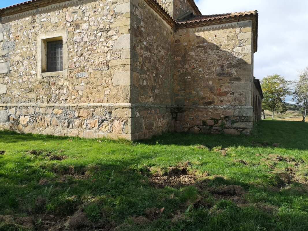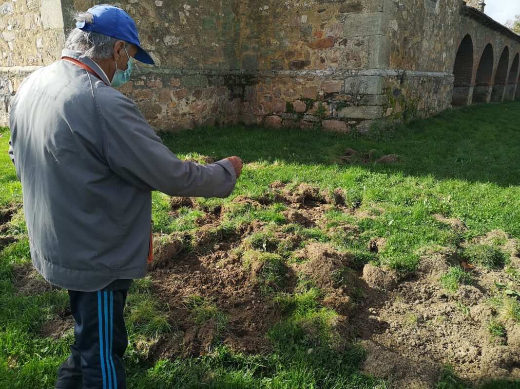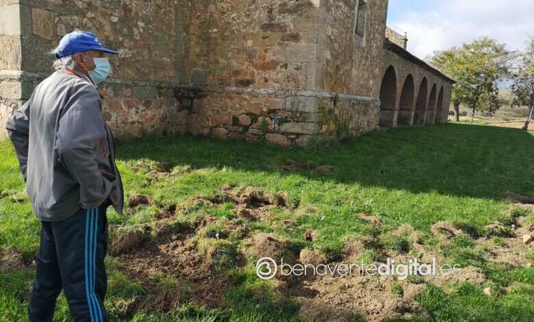 El gusto de los jabalíes por las lombrices, por las melucas, viene causando estragos en la explanada de la ermita de la Virgen de las Encinas en Abraveses de Tera.