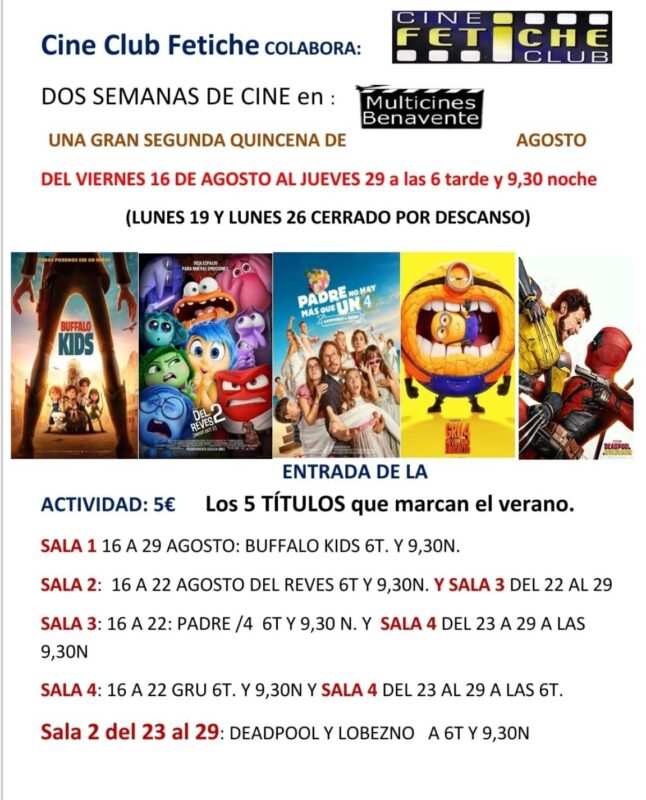 Después de un largo silencio, las salas de los Multicines Benavente vuelven a latir con la emoción del cine. Desde el viernes 16 de agosto y hasta el jueves 29, los amantes del cine tienen una cita ineludible con una selección de películas que prometen marcar el verano en la localidad. Gracias a la colaboración del Cine Club Fetiche, el cine se convierte nuevamente en el centro de entretenimiento en Benavente, ofreciendo una programación pensada para todos los gustos.