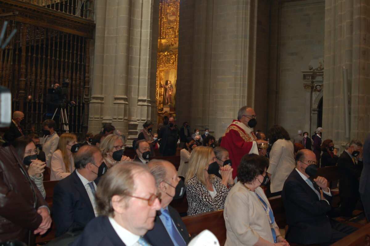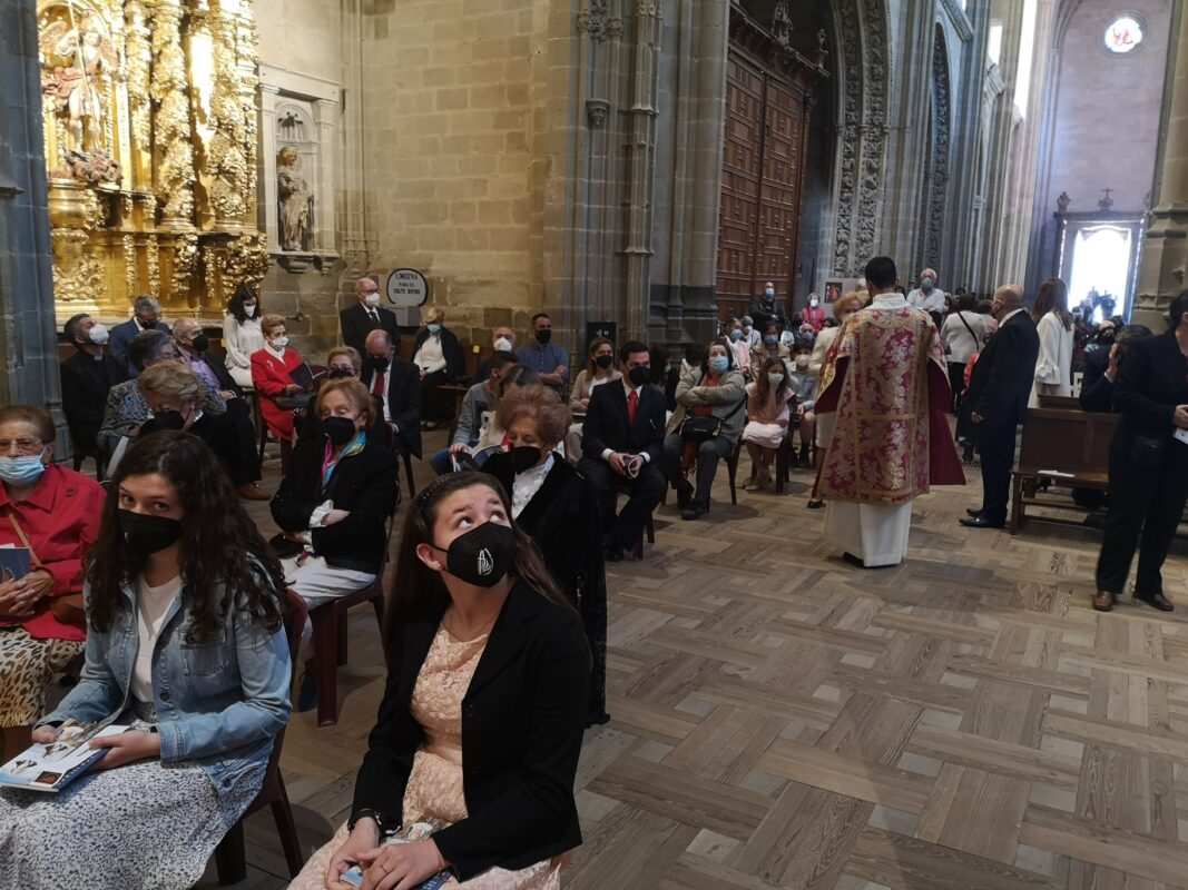 A las 11 de la mañana, como estaba previsto, comenzaba la solemne celebración de la misa ateniéndose al protocolo establecido debido a la situación sanitaria por la COVID-19. El público accedió al templo catedralicio desde media hora antes provisto de invitación para ocupar uno de los asientos fijados en las naves del primer templo de la diócesis asturicense y manteniendo la distancia de seguridad sanitaria. A través de pantallas de televisión los fieles podían seguir la ceremonia religiosa.