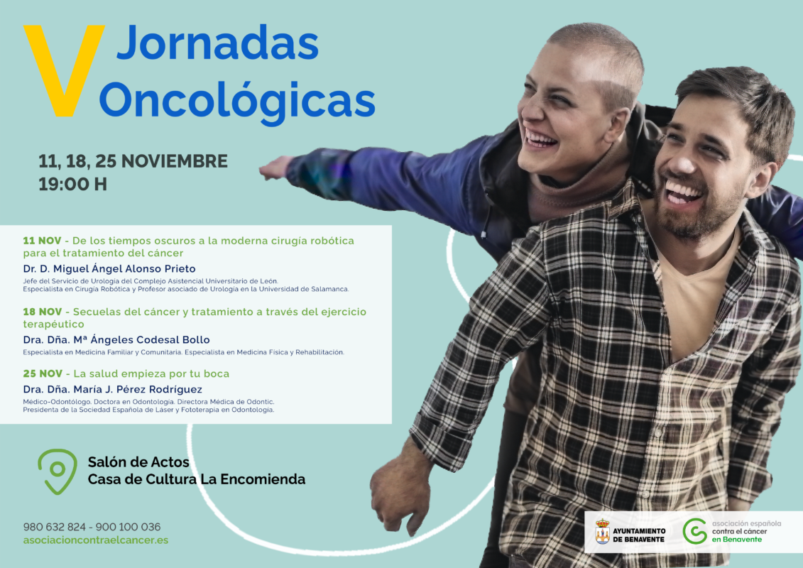 La Asociación Española Contra el Cáncer en Benavente organiza las V Jornadas Oncológicas los días 11, 18 y 25 de noviembre, a las 19:00 horas, en el salón de actos de la Casa de Cultura La Encomienda, dirigidas a la población en general. Con el lema: «contra el cáncer somos solo uno» se presentaban esta mañana en la sede de la asociación de la lucha contra el cáncer de Benavente, las Jornadas oncológicas en su V edición, por parte de la presidenta Carmen Prieto y con la asistencia del alcalde Luciano Huerga.