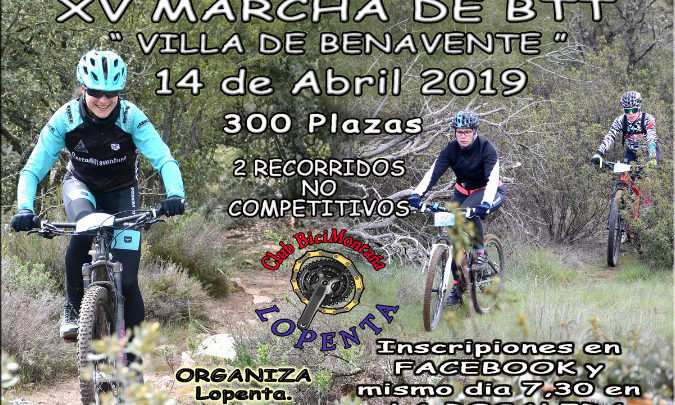 El Club Bici de Montaña Lopenta ha puesto en marcha, desde hace algunas semanas, la XV Marcha BTT “Villa de Benavente” programada para el 14 de abril y que constará de dos recorridos de distinta dureza y donde ninguno de ellos habrá carácter competitivo.