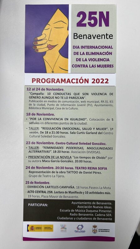 La ciudad de Benavente se sumará a celebrar el 25N con una serie de actos que como pregoneros arrancan este fin de semana con la campaña publicitaria bajo el lema: «10 conductas que son violencia de género aunque no te lo parezcan».