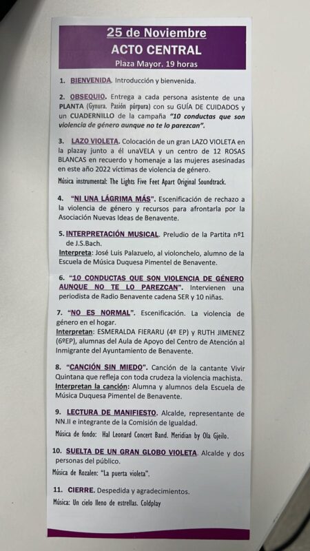 Ayuntamiento, Asociación Nuevas Ideas, Escuela de Música Duquesa Pimentel y ciudadanos de Benavente participan en los actos progamados de cara al 25 N.