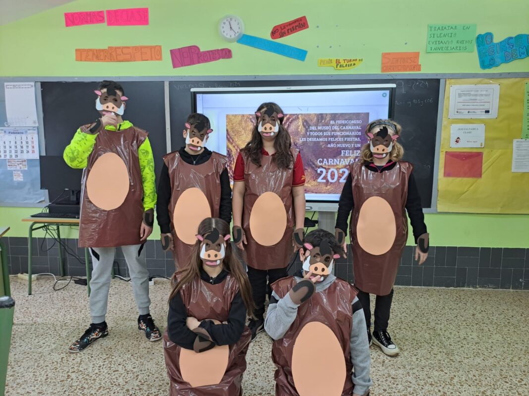 Para celebrar la fiesta de Carnaval, se comenzó esta mañana con un pasacalles por Santibáñez, desfilando por el parque de El Ferial donde los alumnos realizaron, por cursos, un desfile con la música ya preparada. A continuación, la comitiva enfiló el camino al patio del colegio donde se degustó el ya tradicional chocolate con bizcochos ofrecido por el Ampa. La celebración estuvo amenizada con la música tradicional del grupo «Fole Feroz».