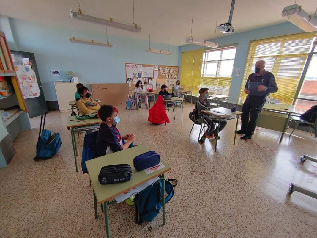 Agentes expertos de la Guardia Civil de la Comandancia de Zamora instruyen a los alumnos sobre temas relativos a los riesgos de internet, sobre el racismo y delitos de odio, el acoso escolar, y sobre la prevención del consumo de alcohol y drogas.