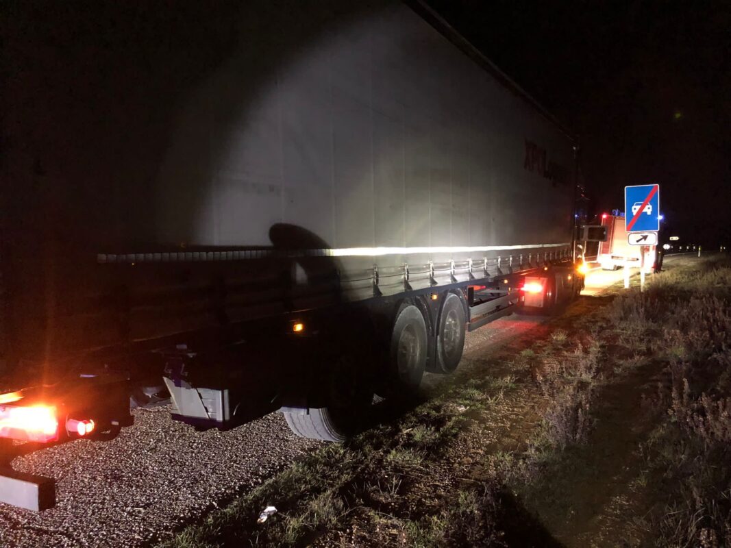 Posteriormente a la llamada anterior, a las 23,38 horas, son avisados alertando de un incidente en el que está involucrado un vehículo que transporta mercancías peligrosas (pintura). El incidente se produjo en el kilómetro 6 de la A-52 en el término municipal de Manganeses de la Polvorosa. Al llegar al lugar verifican que el vehículo había sufrido un reventón en una rueda del remolque sin que la mercancía sufriera daño alguno.
