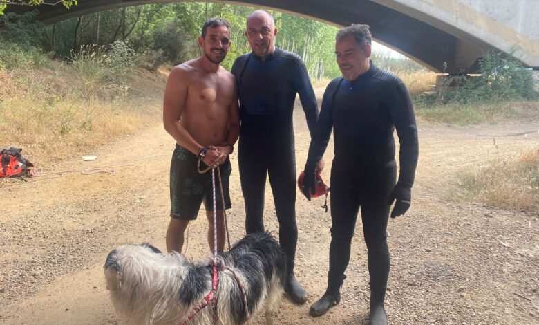 Los bomberos de Benavente rescataron en la tarde de ayer a un perro y a su dueño que se había tirado al agua para intentar salvarlo.
