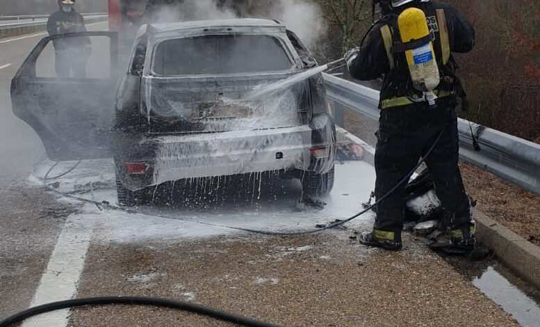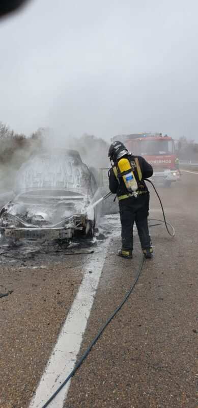 El incendio de un coche en la autovía Rías Bajas, la A-52, entre Mombuey y Palacios, concretamente en el punto kilométrico 65, obligó a la intervención de una dotación del parque de Bomberos en Rionegro del Puente. Los bomberos intervinieron en sofocar las llamas del vehículo del que salió ileso su ocupante, un ciudadano chino.