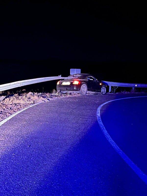 Ante la complejidad del siniestro, fue necesario cortar la bionda metálica para liberar el coche y permitir su posterior retirada por la grúa. La Guardia Civil de Tráfico confirmó que, pese a la espectacularidad del accidente, los dos ocupantes del vehículo resultaron ilesos.