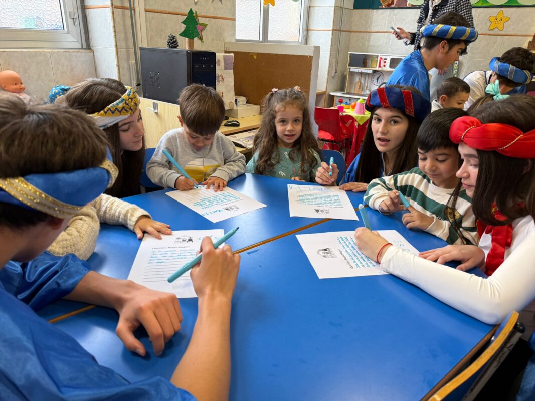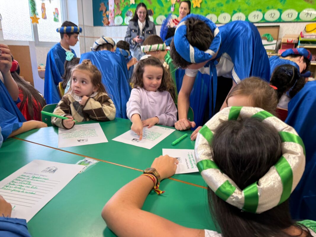 Los Pajes no solo tomaron nota de los deseos, sino que aprovecharon la visita para recordar la importancia de la buena conducta y la generosidad. Preguntaron a los niños: «¿Habéis sido buenos este año? ¿Os portáis bien en clase?» y los pequeños respondieron con entusiasmo. Además, los animaron a pensar en regalos para hermanos, padres y abuelos, fomentando la solidaridad y la generosidad desde la infancia.