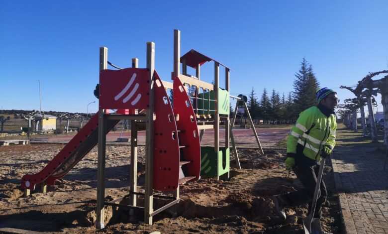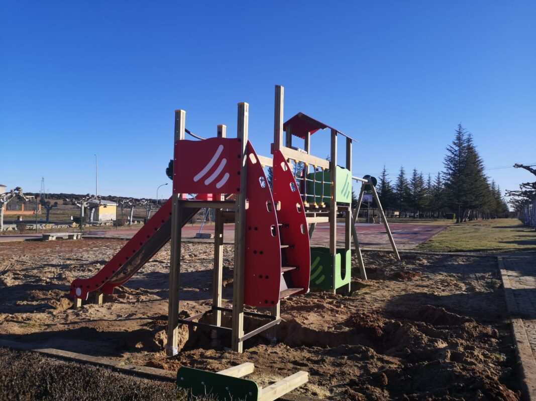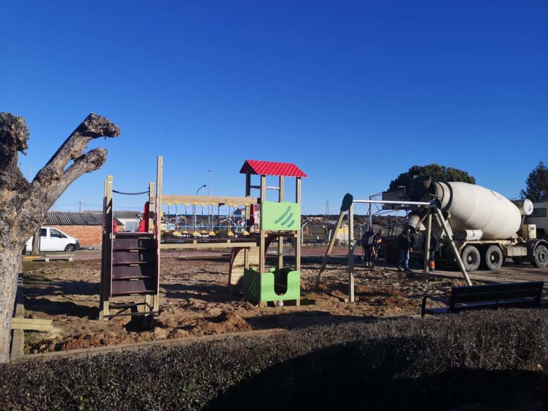 En el arenero del parque de la avenida Santiago o de las Eras, junto al casco urbano, se procura en estos días el nuevo parque infantil subvencionado con el Plan del Fondo de Recuperación.