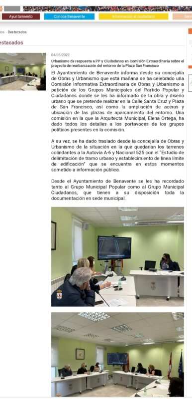 Según los técnicos municipales a fecha de hoy no está todavía redactado el proyecto de actuación para la plaza San Francisco y el Ayuntamiento, como recoge su página web, aduce que en la sesión informativa «se han dado todos los detalles a los portavoces de los grupos políticos presentes en la Comisión». Más aún, se difunden imágenes de la reunión de los miembros de esta Comisión en el transcurso de la sesión.