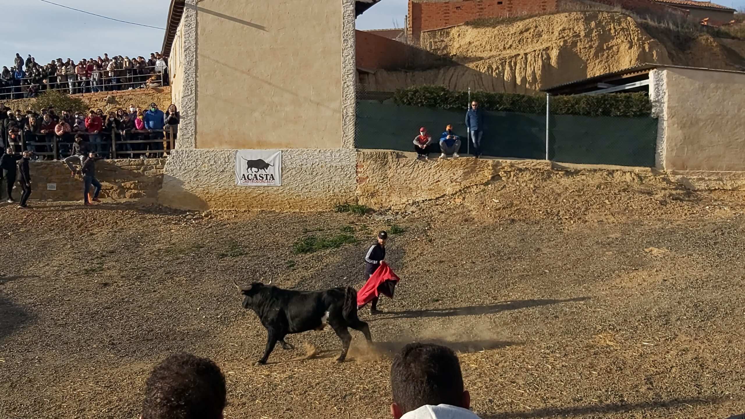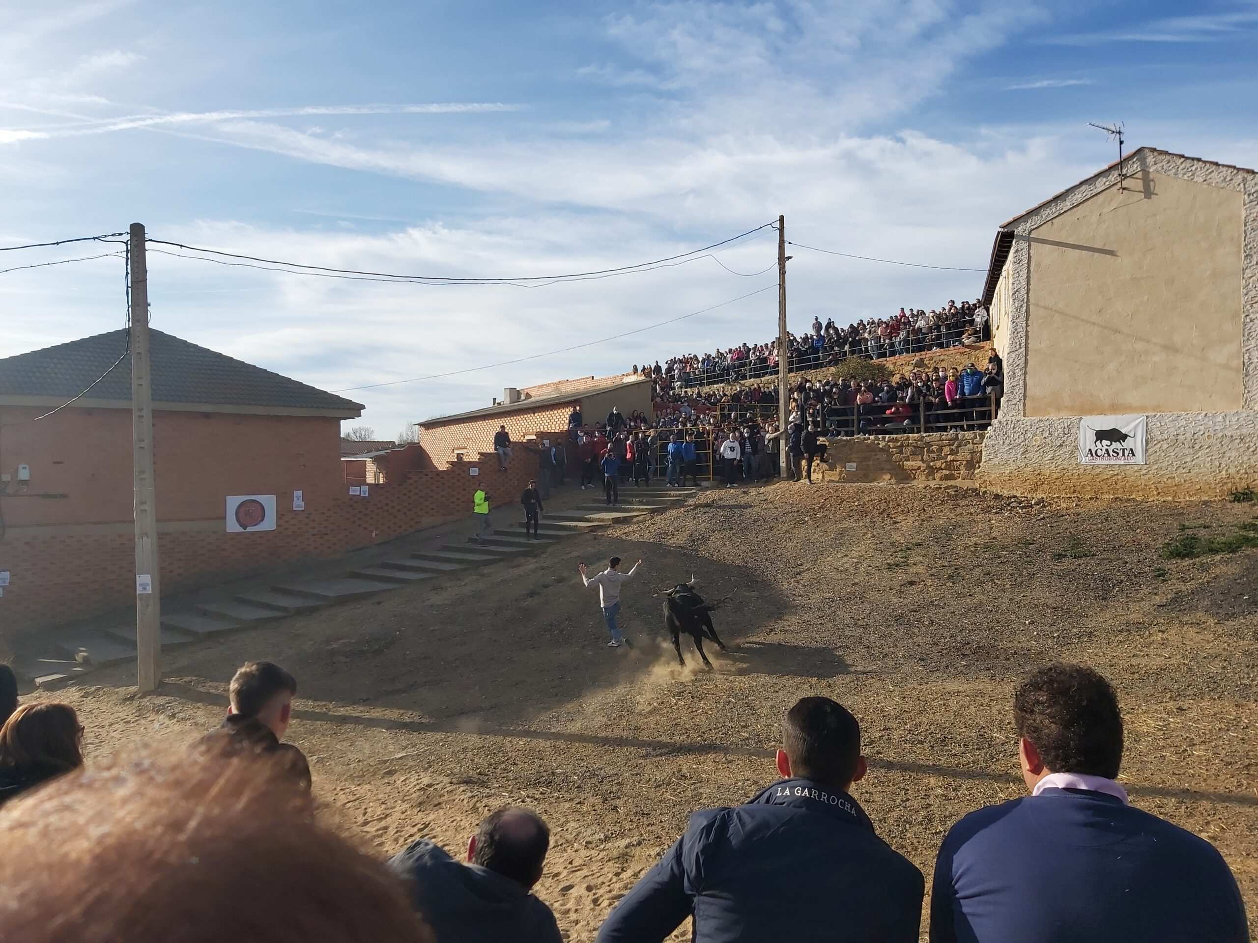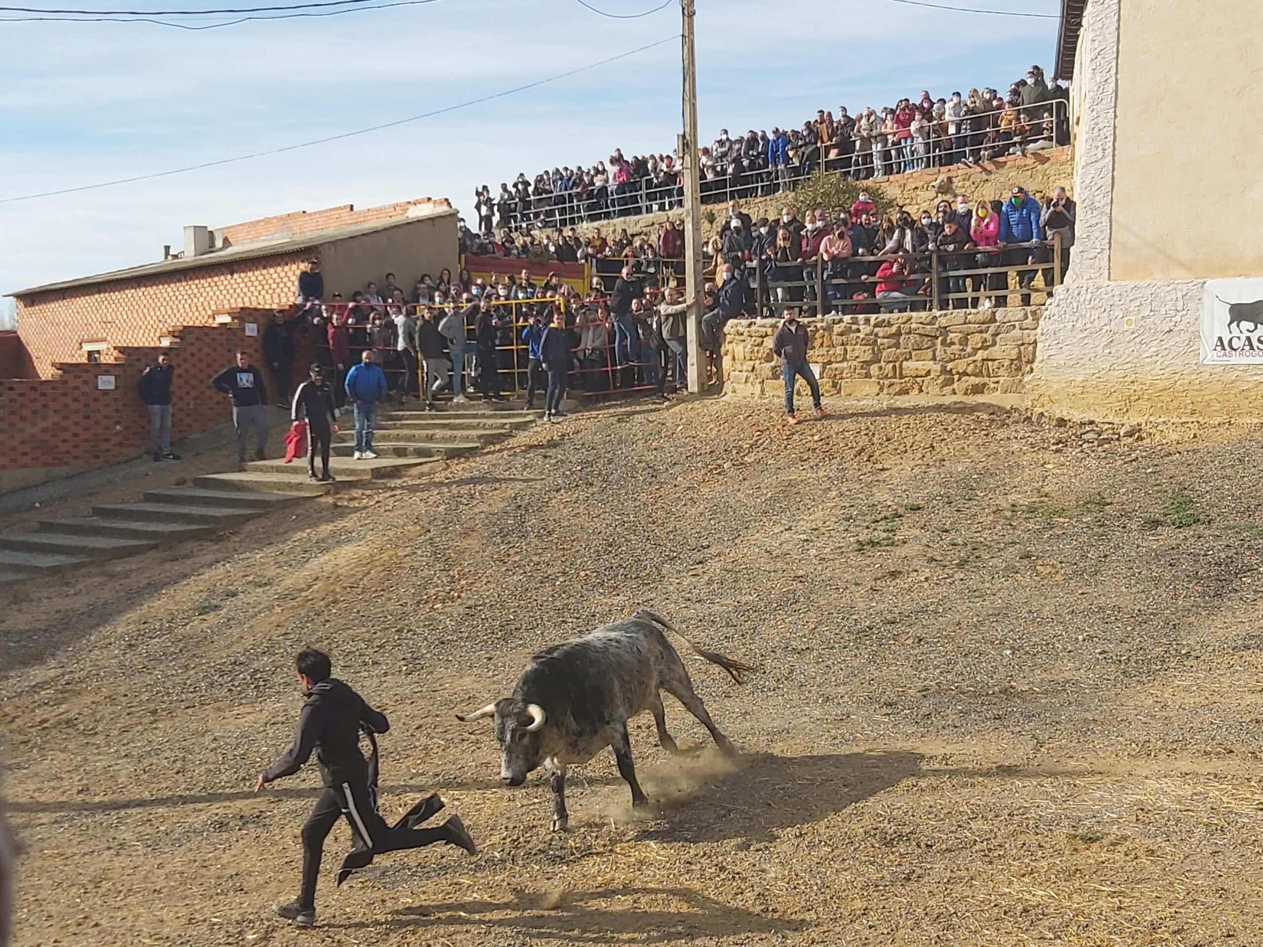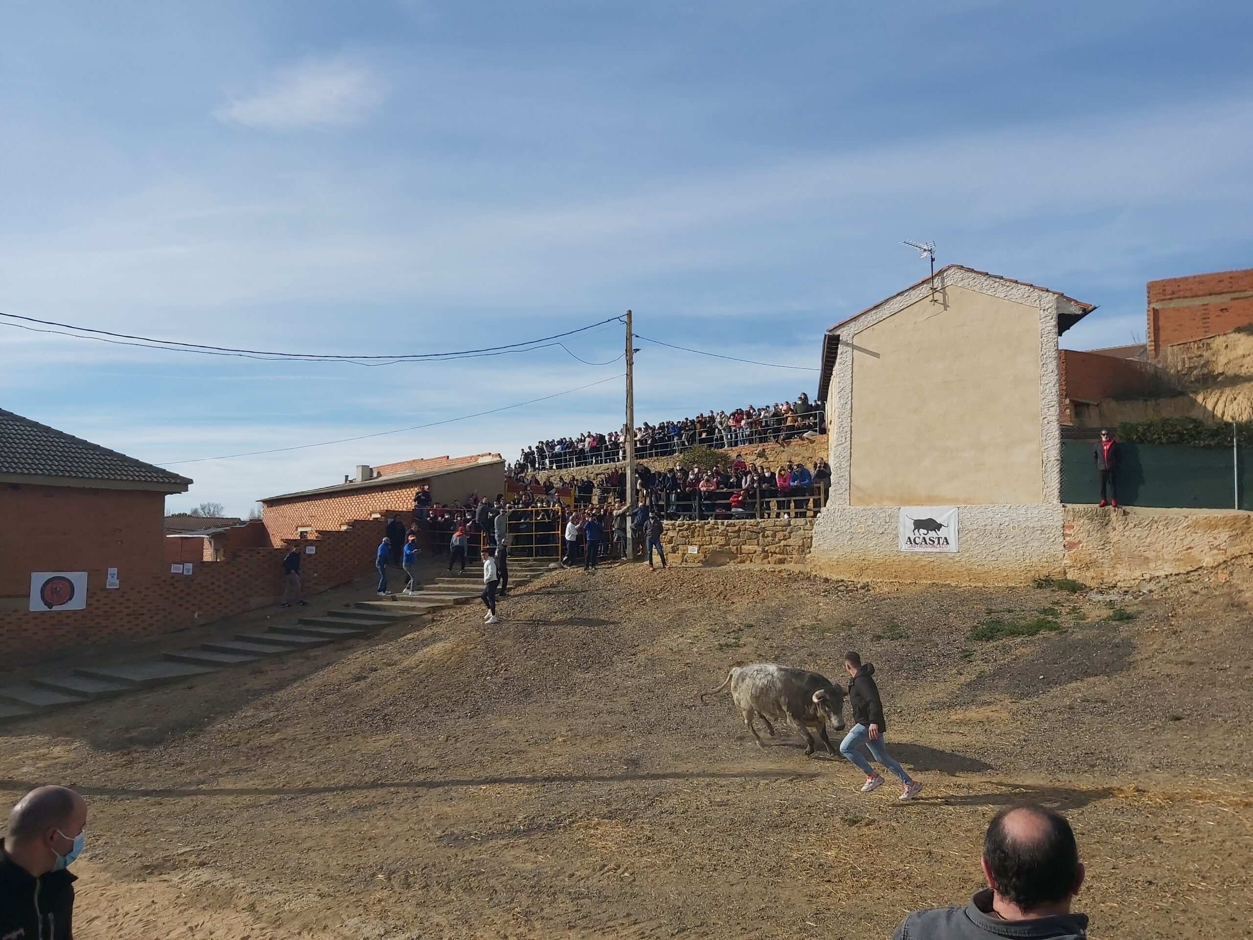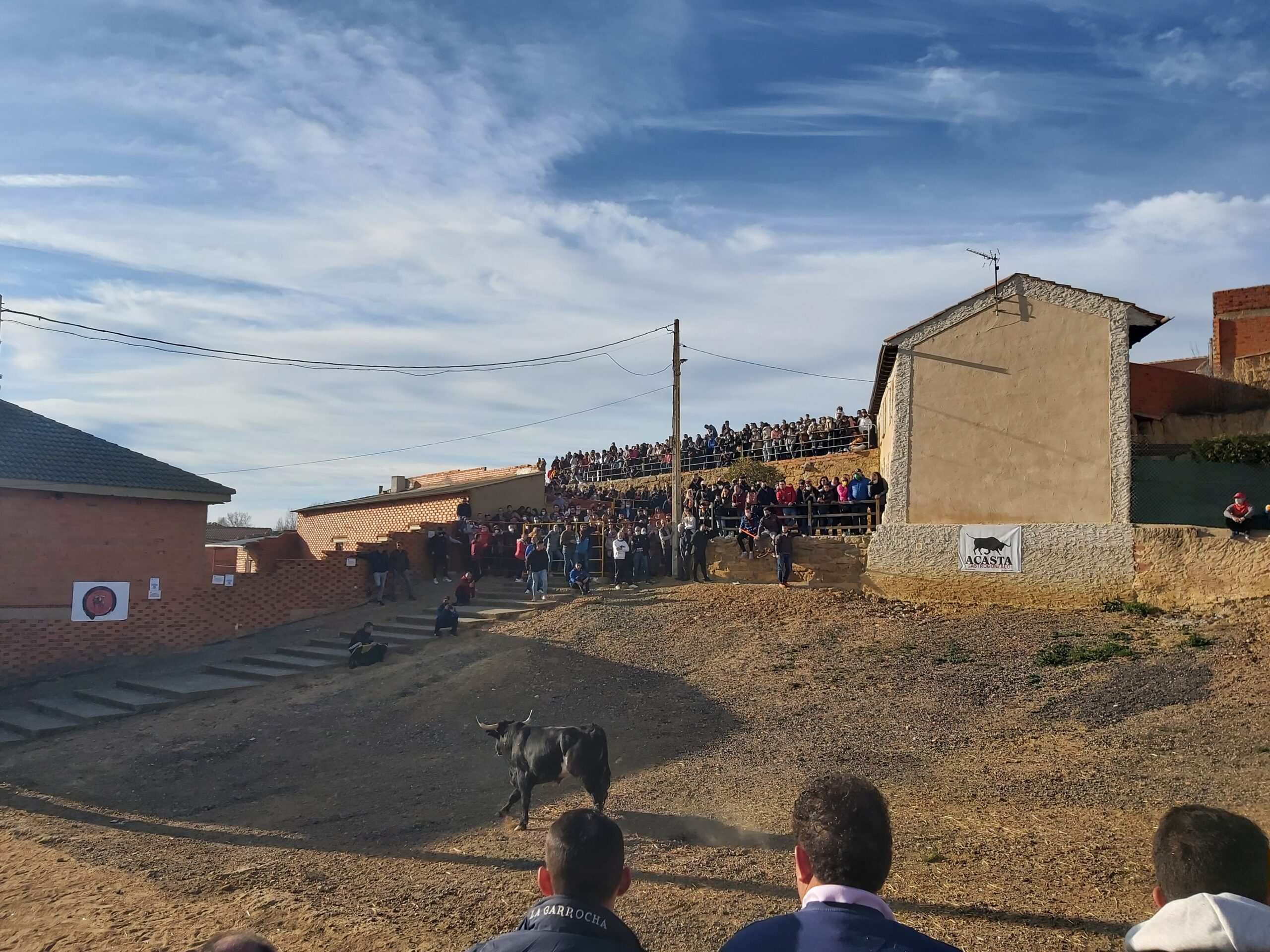 Una celebración organizada por la asociación taurina Acasta en colaboración con el ayuntamiento el cual, fue el encargado de la suelta del primer novillo del cajón. Poco después de que “Carafea”, como se llamaba el novillo, pisara las calles del pueblo pasadas las cuatro de la tarde, llegaba el primer susto de la tarde con un herido leve que recibió varios puntos.