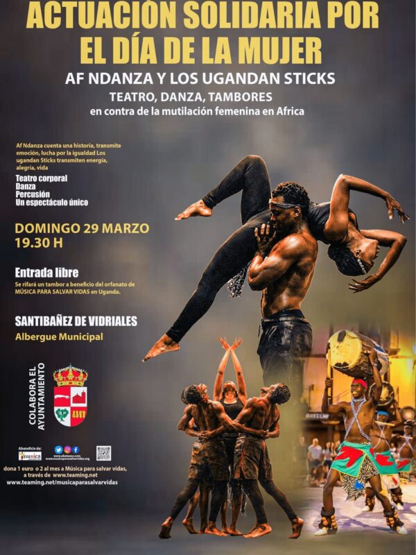 Desde el África más profunda llega la danza y percusión a Santibáñez de Vidriales de la mano de los Ugandan Stiks y sus tambores de Ruanda. En el marco de la gira de primavera-verano, recala en la villa vidrialesa este espectáculo de danza y percusión, AF NDANZA, una actuación solidaria contra la mutilación femenina en África.